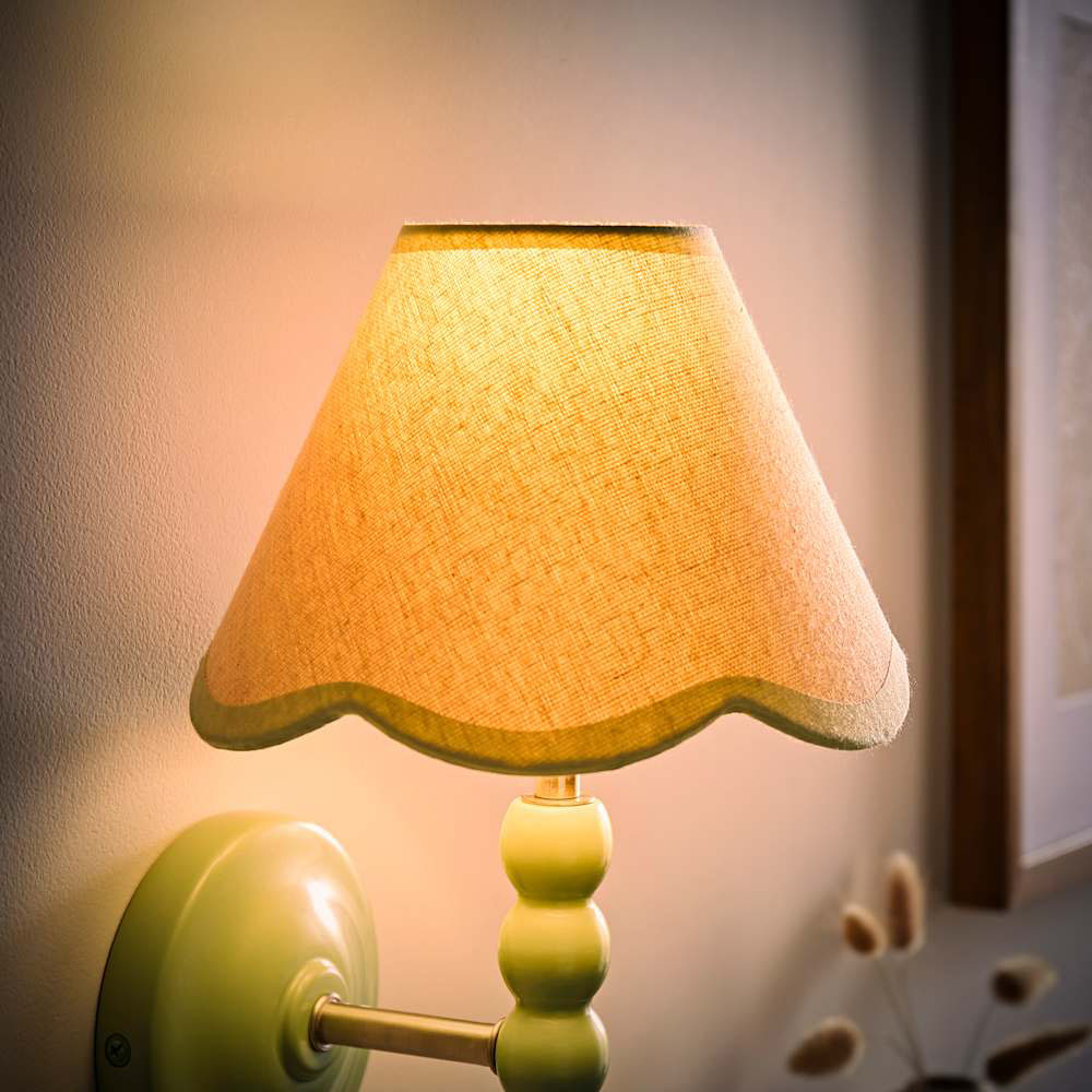 Looking to brighten up your space with something a little sweet and stylish? The Florie Mini linen scalloped shade is just the thing. Crafted from linen and with an on-trend scalloped edge, it’s perfect for wall lights in bedrooms, hallways, or any cosy corner that needs a little lift. Bulb not included.