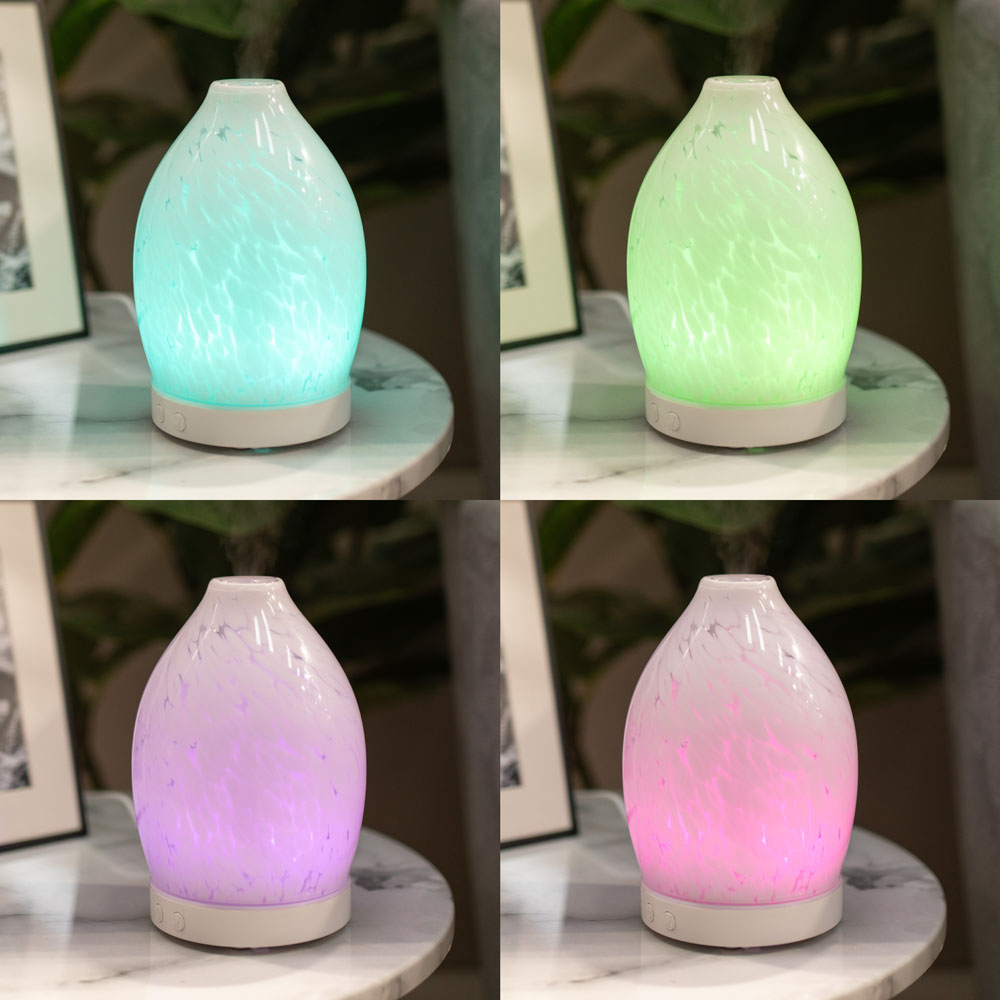 Elevate the ambience of your living room with the ValueLights Glass Confetti Diffuser with Light. This light is made from confetti glass in a white finish and is perfect for creating a calming and relaxing environment in your home. It features a timer function and LED colour-changing lights, allowing you to choose from a slow fade, continuous change, or a static colour. Additionally, this ambient USB plug-in diffuser can add scent and moisture to the air. Please note that essential oils are NOT supplied. The dimensions are H16.5 x D11cm.