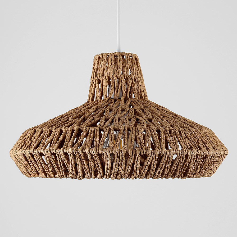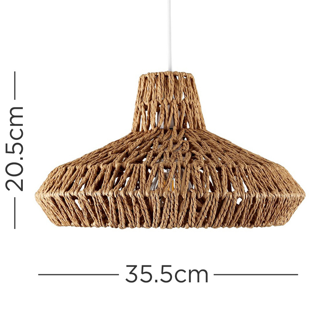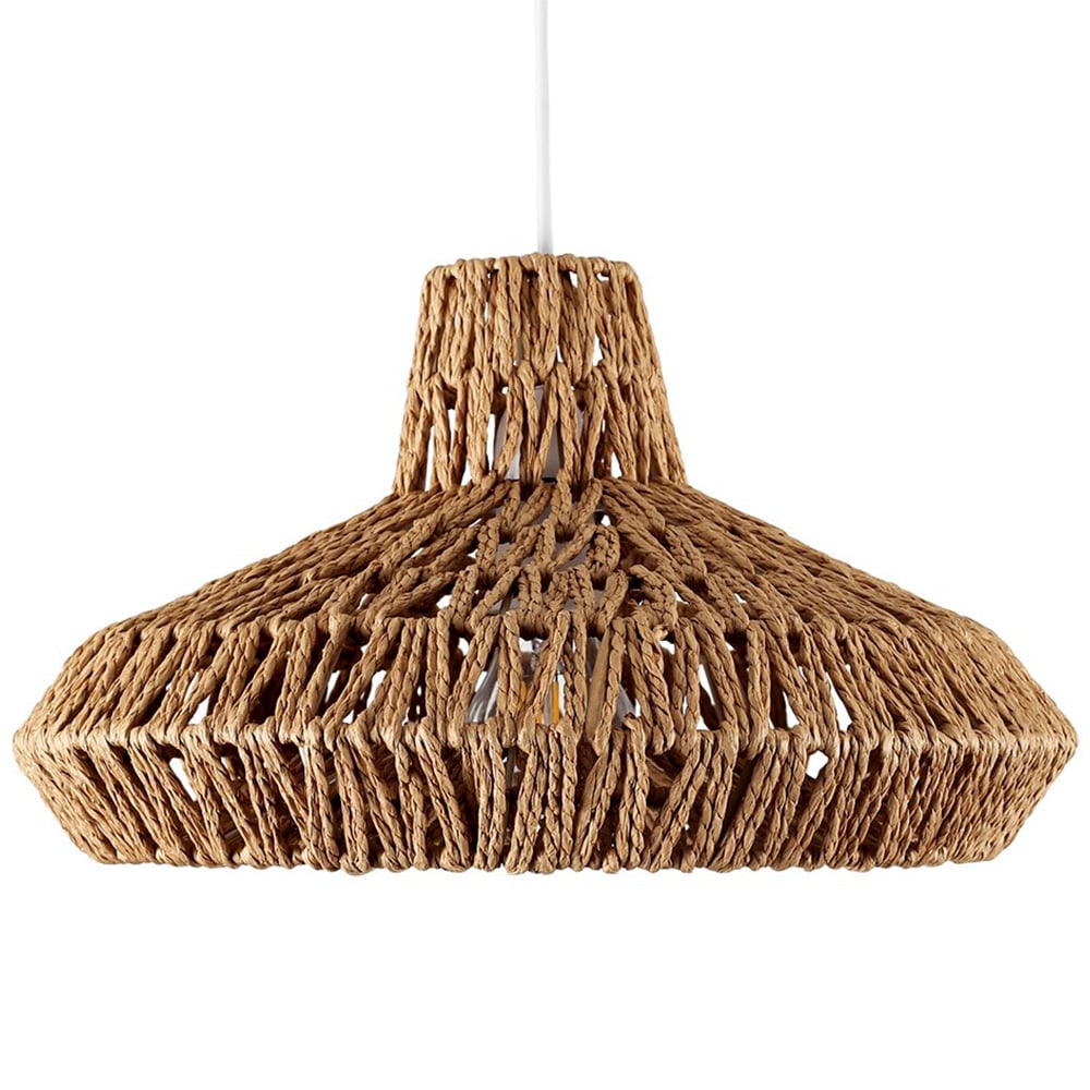 Elevate your home with the ValueLights Hamilton Natural Woven Easy Fit Pendant Light Lamp Shade. This rope finish light lampshade features a natural woven design effect. It fits seamlessly into your existing ceiling light socket with no wiring required. This pendant lampshade allows light to escape between the rope, creating a beautiful lighting effect. This contemporary shade boasts a height of 20cm and 50cm diameter and is a quick and easy way to update any room in your home.