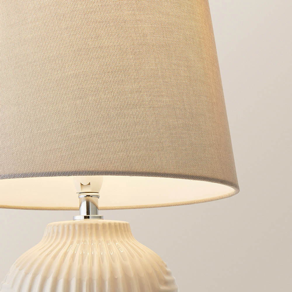 Introducing Harrison, a table lamp that effortlessly infuses style into any space with its glossy grey finish and geometric ribbed design. This large gloss table lamp not only serves as a captivating statement piece but also offers practicality with its included LED bulb, ensuring you're ready to illuminate your room straight away. The colour-matched fabric cable and brushed chrome cap add a touch of modern elegance, while the soft linen tapered shade blends cosy lighting with contemporary aesthetics, making it an ideal choice for anyone looking to enhance their home's ambiance.