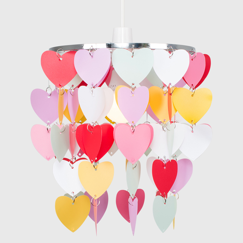 Add a delightful finish to your decor with this ValueLights Heart Disc Droplet Ceiling Pendant Light Lamp Shade. The pretty pink, red, white and yellow hearts on this ceiling pendant shade make it perfect to give your home a lovely finish. The lampshade easily fits into the existing lamp holder and transforms a room in a matter of seconds with no electrical installation. It is an ideal addition to children's bedrooms or nurseries, measuring a height of 25cm and a diameter of 23cm.