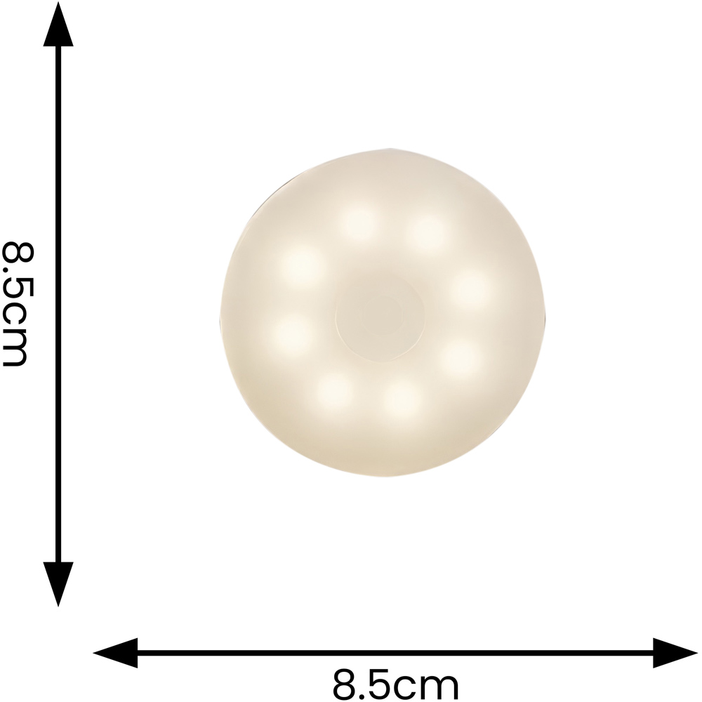 Upgrade your home decor with this pack of six warm white spotlights. The rechargeable battery allows the lights to go cordless and the sticky magnets provided allow you to place the lights where required, without the need of an electrician. When in darkness the PIR motion sensors will switch on when presence is detected within 3M. These lights are perfect for under kitchen cupboards, up the staircase, inside wardrobes, on shelves and more. They come complete with six 20cm USB charging cables. Please Note - The recommended charging time for full charge is 1 hour to get 2 hours glow time.