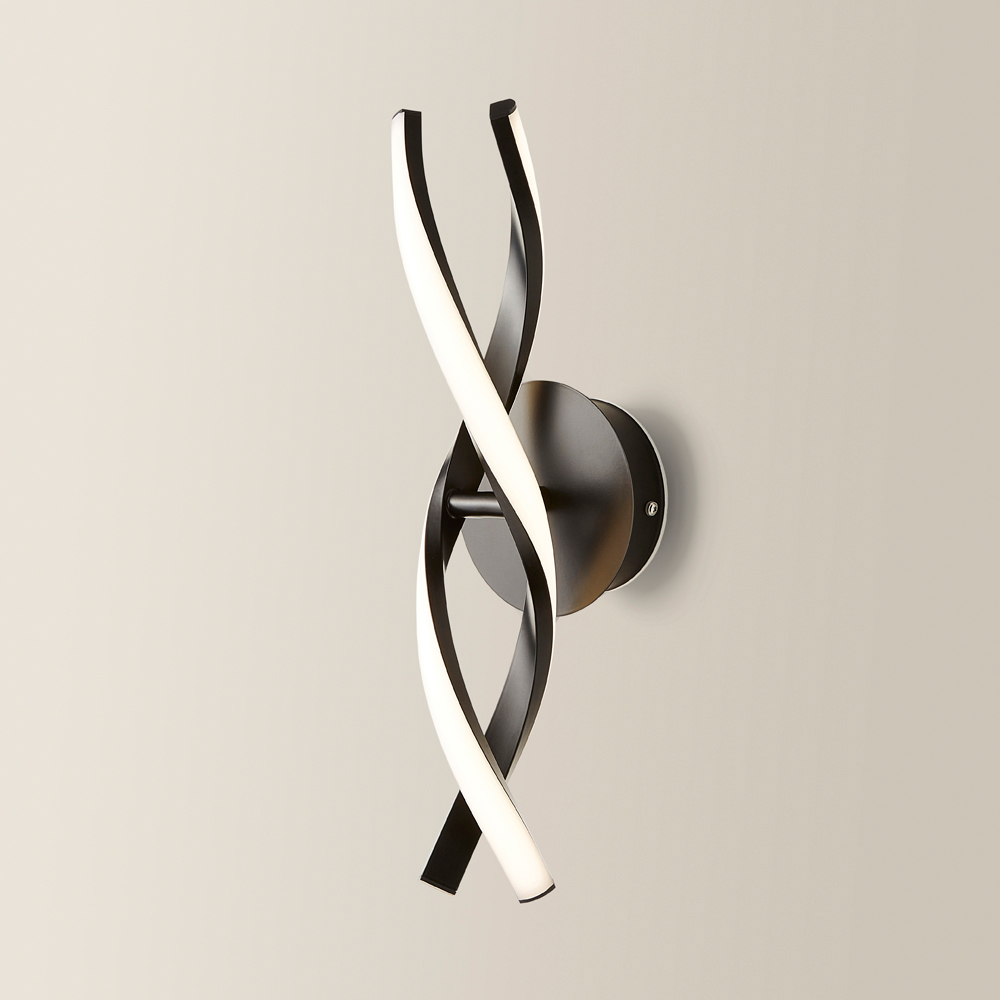 Lighten up your home in a versatile and environmentally friendly way with LED lighting. This sleek double twist design wall light fitting in a matte black finish looks just as effective switched off as it does on, while giving off a neutral white, vibrant ambience. This wall light is IP44 rated and can be used in any room in your home, including bathrooms and outdoor areas. With a perfect balance of style and functionality, this light brings a touch of modern sophistication to any space, and the efficient design can be used as a flush fitting for ceilings or walls. Dimensions: H40 x W12 x D12cm.