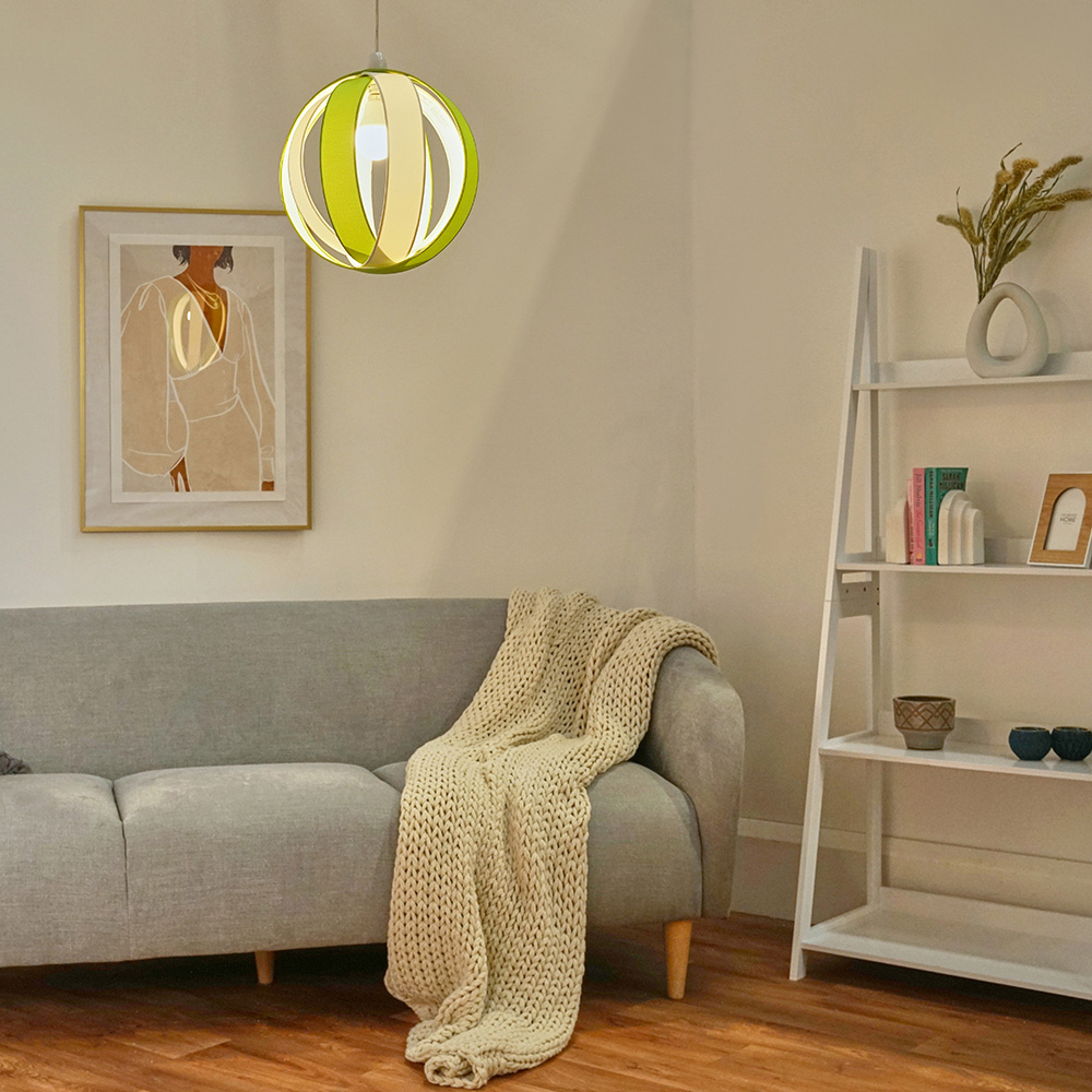 Give your decor a touch of finesse with this ValueLights J90 Green Easy Fit Ceiling Light Shade. It features a series of four circular layers, which form an unusual moon cocoon design. Easy to fit on an existing socket with no wiring required, it can be used to give your ceiling lights a modern update. Dimensions: H29 x Dia29cm. Note: Some self-assembly is required. Its circular sections of the shade need to be spread out into a globe shape once fitted onto the lamp holder. Suitable to use with a 10W max bulb. It is not suitable with traditional or halogen bulbs.