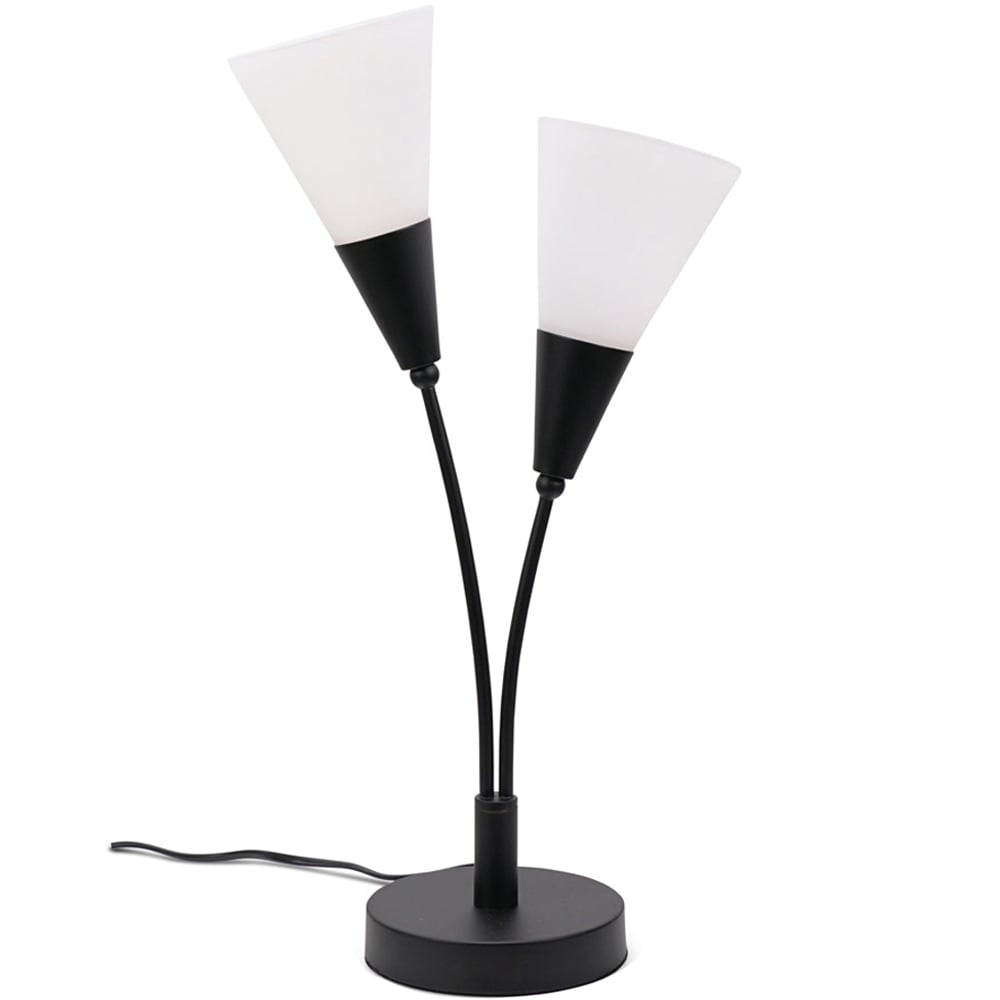 Illuminate your space in style with the ValueLights Kristina 2 Way Frosted White Shade Black Uplighter LED Table Lamp. This two-way table lamp introduces a modern and dynamic ambience to any room with its uplighter style, which contributes to a multi-dimensional lighting effect in the space. Gently wipe the product with a clean, dry cloth to maintain its condition. Additionally, the product comes with a 12-month warranty. Equipped with LED bulbs.