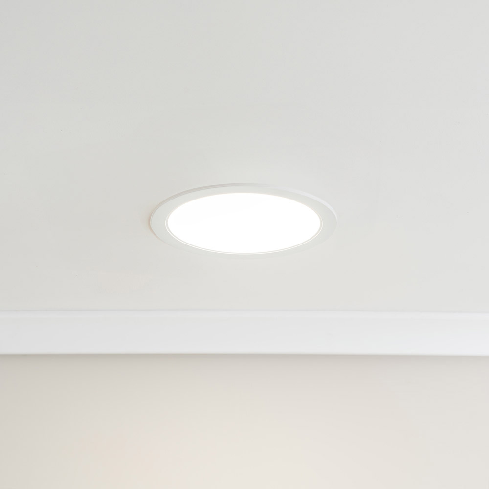 Modern and sleek, this round flush ceiling light fitting comes in a white or black finish with a frosted shade. This panel light features a simple, classic design which would suit most interiors. Complete with a clip-off casing so the light can be recessed or flush to the ceiling. The integrated LED 24W bulbs give off a neutral glow. These lights are IP44-rated making them fully certified for bathroom installation.