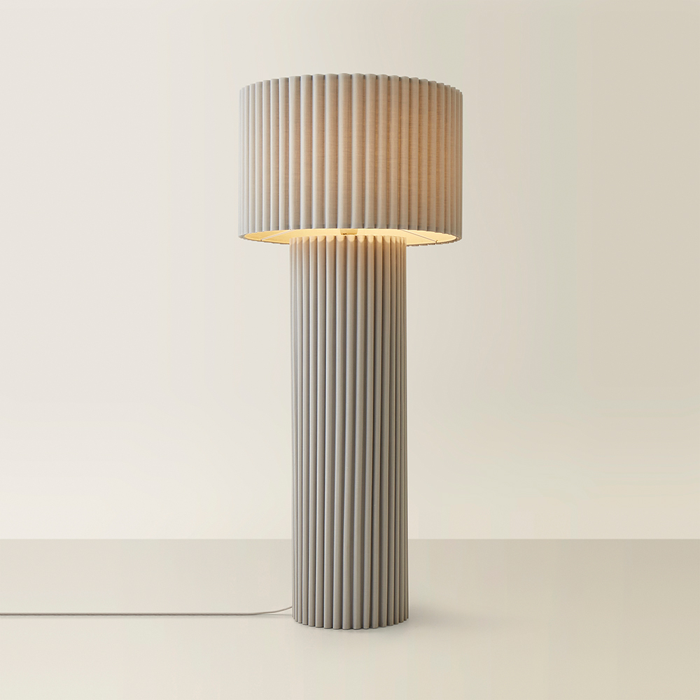 Lenny effortlessly combines functionality with aesthetic appeal, making it a standout grey ribbed fabric floor lamp in the UK market. This midi floor lamp features a sophisticated ribbed design and a matching inner shade that enhances its overall elegance. Perfect for adding a touch of warmth and sophistication to any room, Lenny comes equipped with an LED bulb, ensuring you're ready to illuminate your space right away. Its substantial size, standing at 108cm tall, ensures it makes a statement while providing ample lighting.