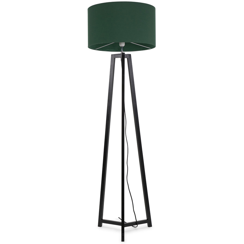 The Lottie tripod floor lamp in black wood is the perfect neutral base for this forest green fabric drum shade. The black wood base adds a chic and modern feel to any home.