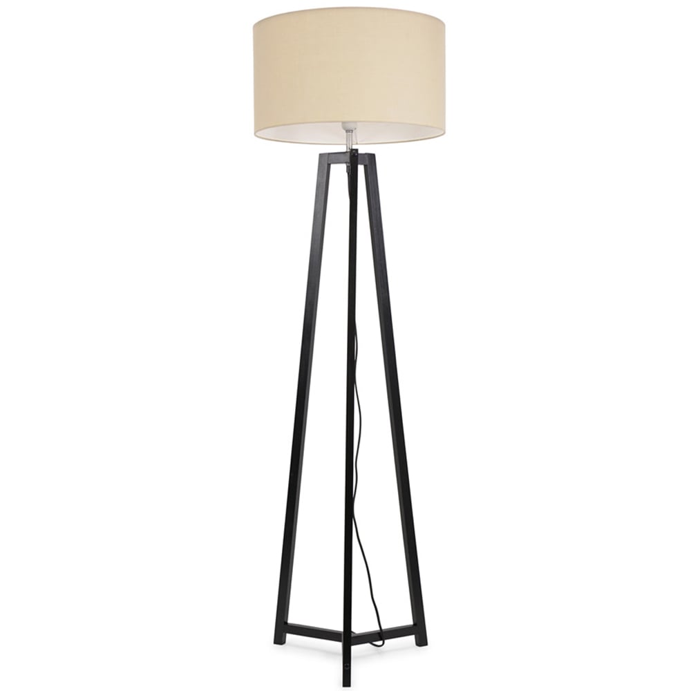 The Lottie tripod floor lamp in black wood is the perfect neutral base for this natural fabric drum shade. The black wood base adds a chic and modern feel to any home.