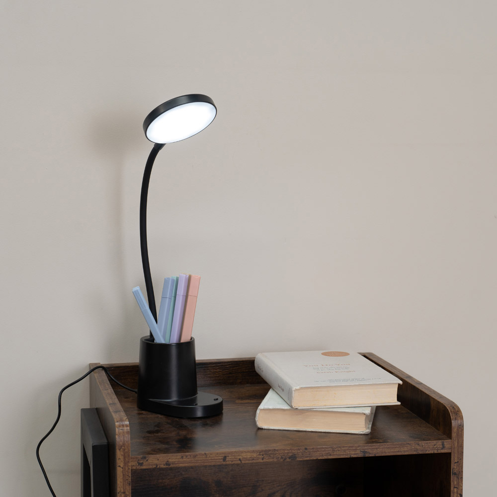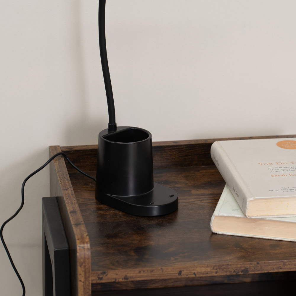 The Marco rechargeable dimmable goose neck desk lamp in black is the perfect petite desk lamp. With a built in pen pot, flexible goose neck and three lighting temperatures it'll be whatever you need in the moment. Dimensions - H47 x W12.8 x D9.8cm.