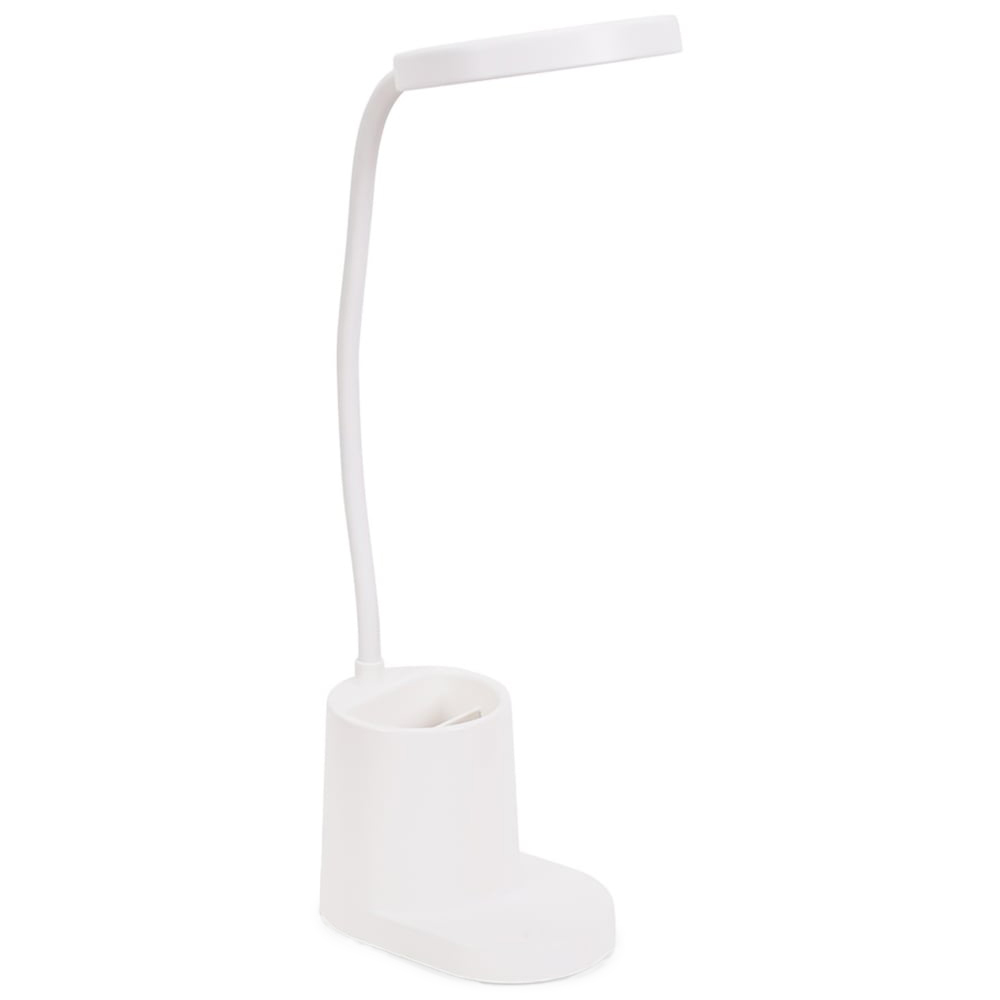 The Marco rechargeable dimmable goose neck desk lamp in white is the perfect petite desk lamp. With a built in pen pot, flexible goose neck and three lighting temperatures it'll be whatever you need in the moment. Dimensions - H47 x W12.8 x D9.8cm.