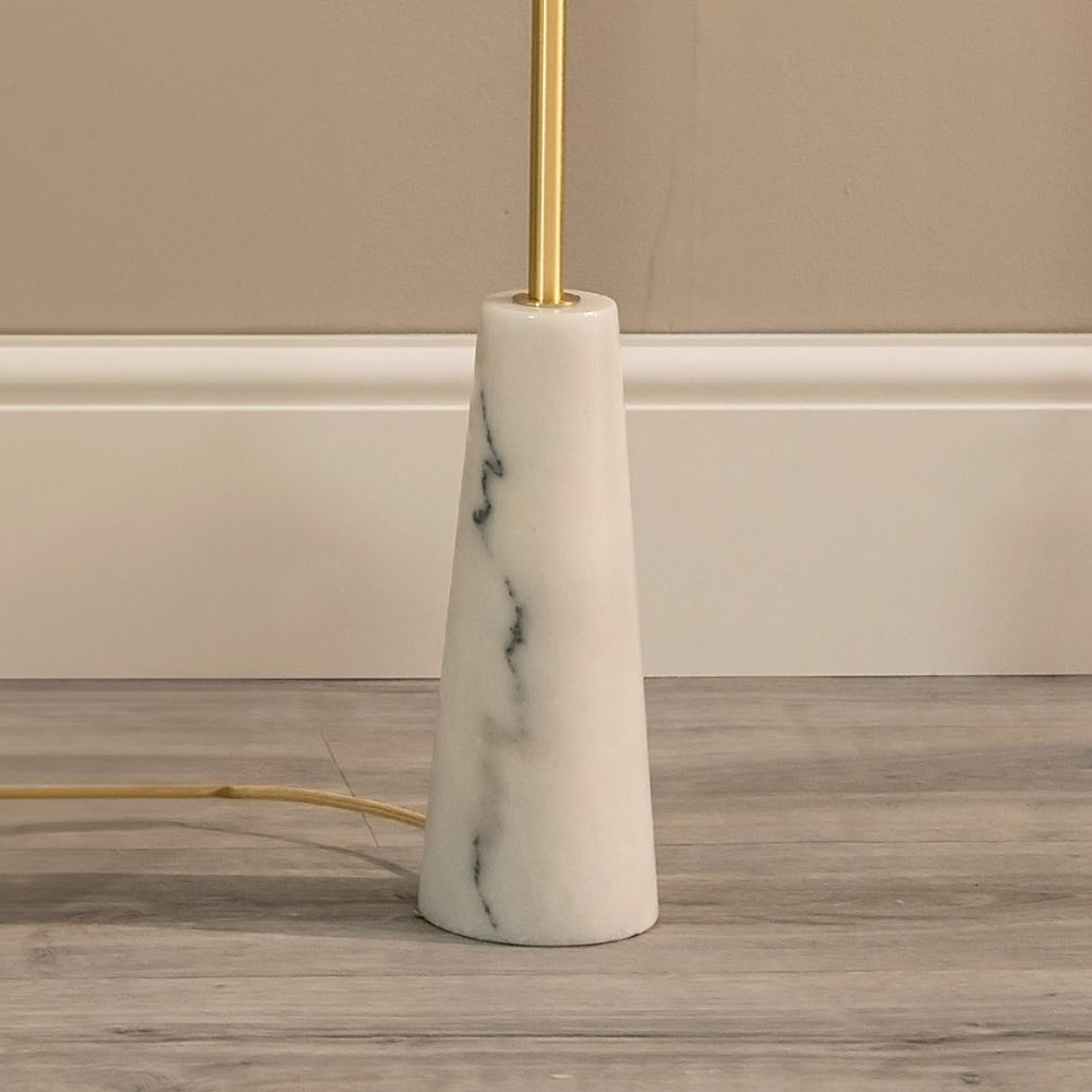 Transform your room in seconds with this elegantly crafted floor lamp. Blending a solid marble base with gold stem, and paired with a fabric tapered lampshade. The light filters through the linen shade, creating a warm and cosy glow. A minimalist and modern piece that touches on the trend of natural materials.