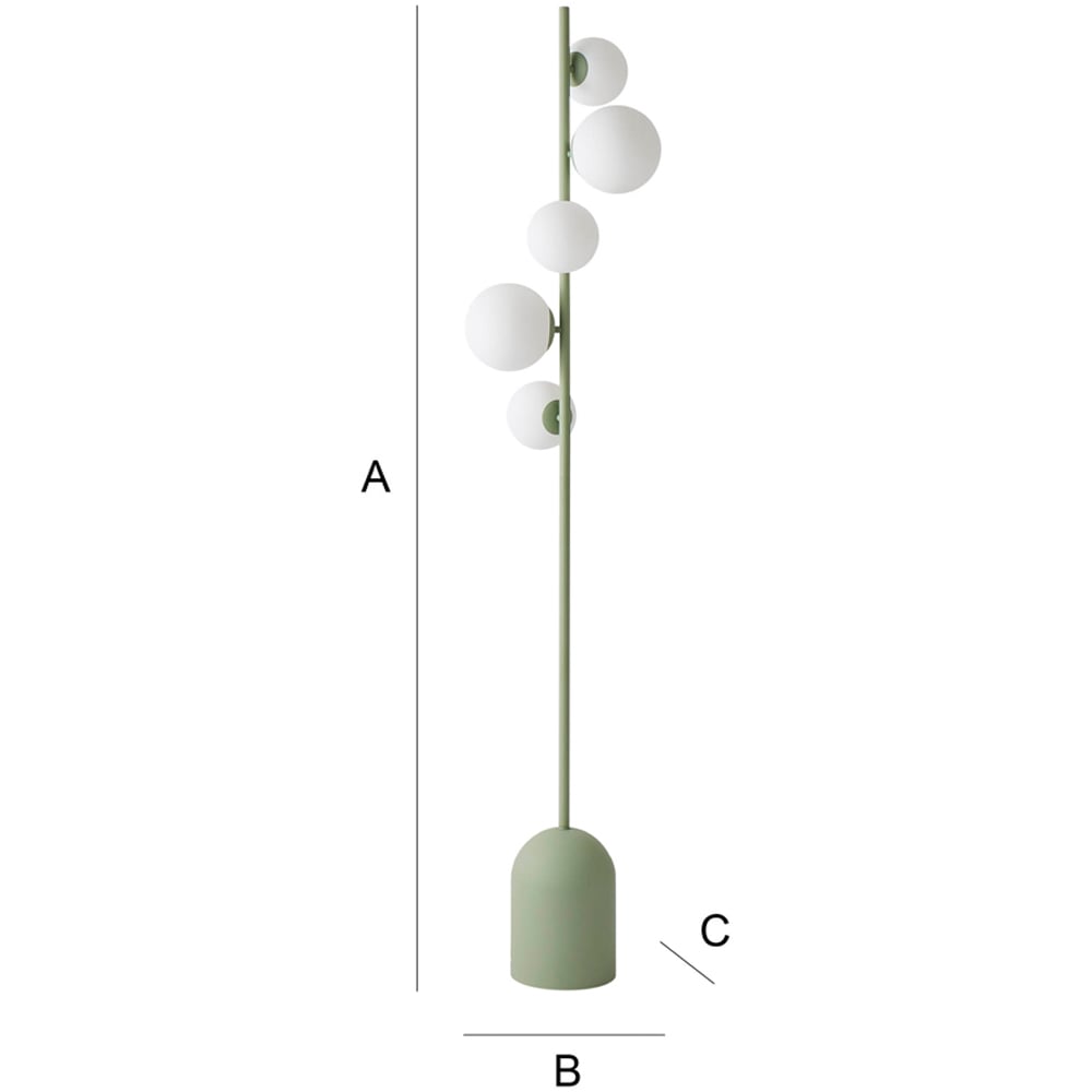 Illuminate your space in style with the ValueLights Marlow 5 Way Sage Green Opaque Globe LED Floor Lamp. The five-way floor lamp with glass globe shades exudes timeless elegance and offers versatile lighting options for any space. The stylish finishes and glass globe shades make it a perfect addition to modern homes, providing a burst of vibrant colour or a nod to the art deco era. The multi-way lighting design adds depth and character to any room, making it a standout piece in any decor. Gently wipe the product with a clean, dry cloth to maintain its condition. Additionally, the product comes with a 12-month warranty. Equipped with LED bulbs.