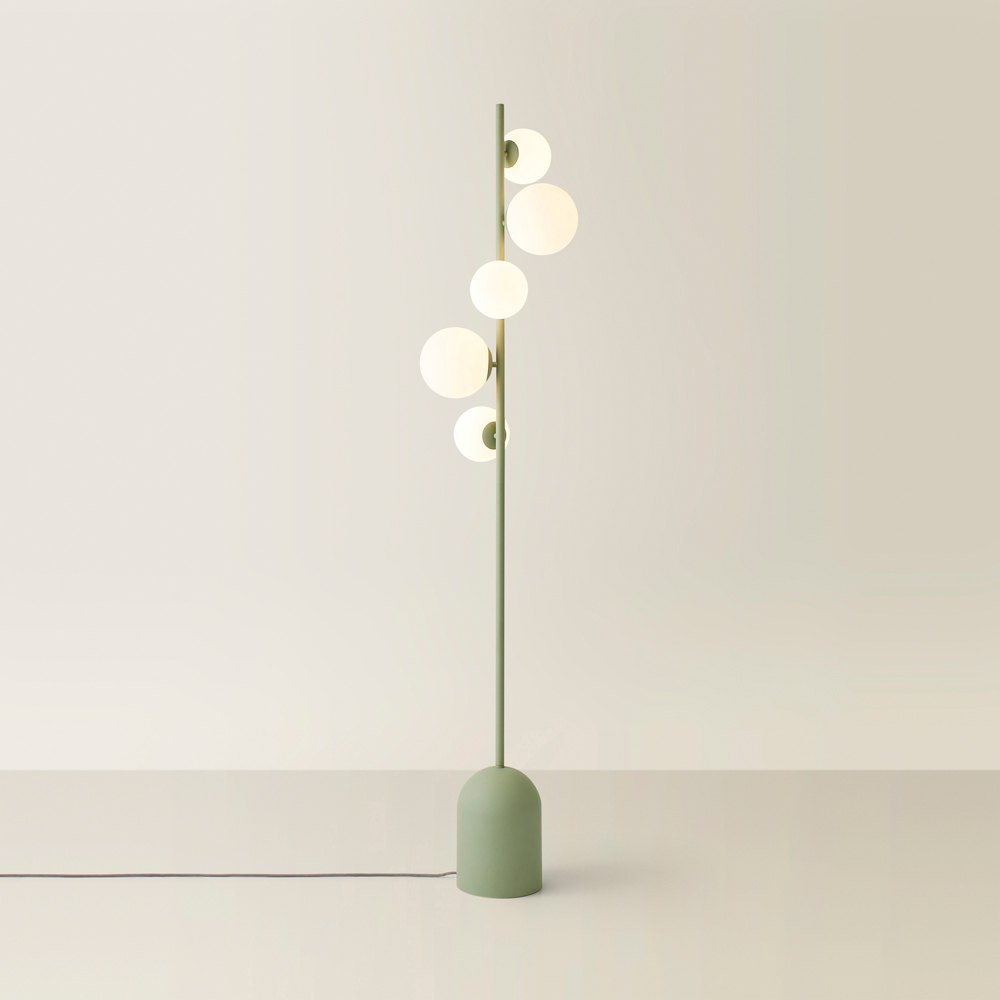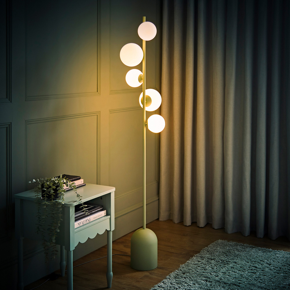 ValueLights Marlow 5 Way Sage Green Opaque Globe LED Floor Lamp