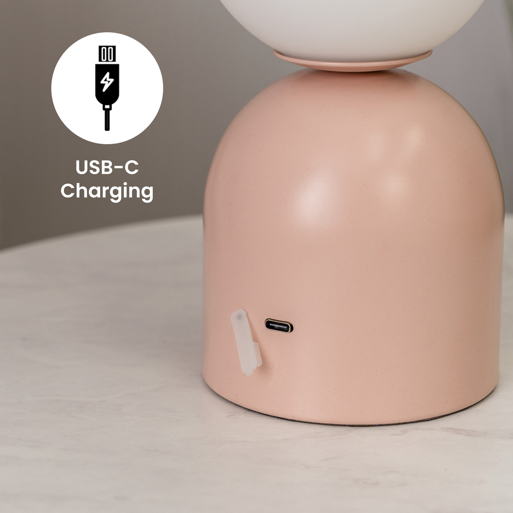 Our cordless table lamp is designed to help brighten your space whilst creating a chic and cosy atmosphere in your home. Featuring a pastel base in a blush pink, sage or oyster grey finish with a glass globe lampshade. The opal glass shade offers a warm glow of light and is the perfect complement to the metal base. With three colour settings and dimmable capabilities, this light will always give you the perfect level of luminous glow. This touch table lamp comes complete with a 1M USB charging cable. The recommended charging time for a full charge is 4 hours to get 4 hours of glow time. Please note - we have matching products available in our shop.