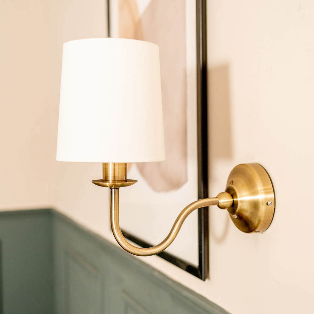 Brighten up your living space with this elegant wall light. Statement metal combines with a fabric shade for a classic look that will fit in with both modern and traditional interiors. With the gentle curve of the arm and the timeless neutral shade, ready to class up any interior.