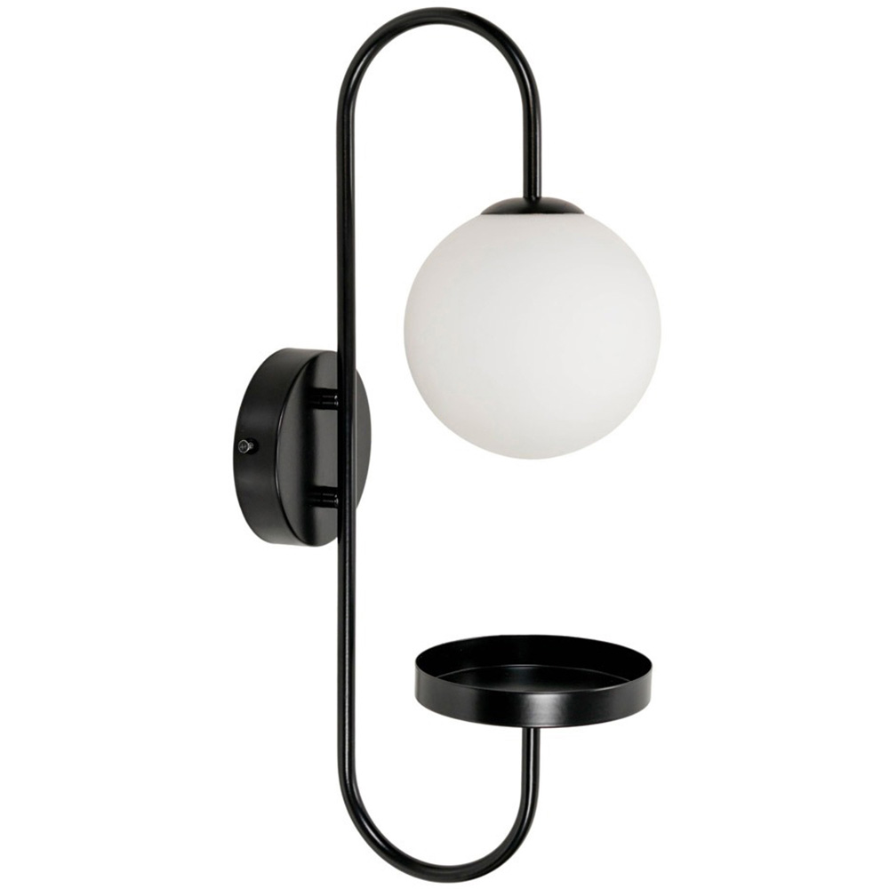 ValueLights Milo Frosted Glass Globe Shade Curved Matte Black Wall Light with Shelf and Bulb