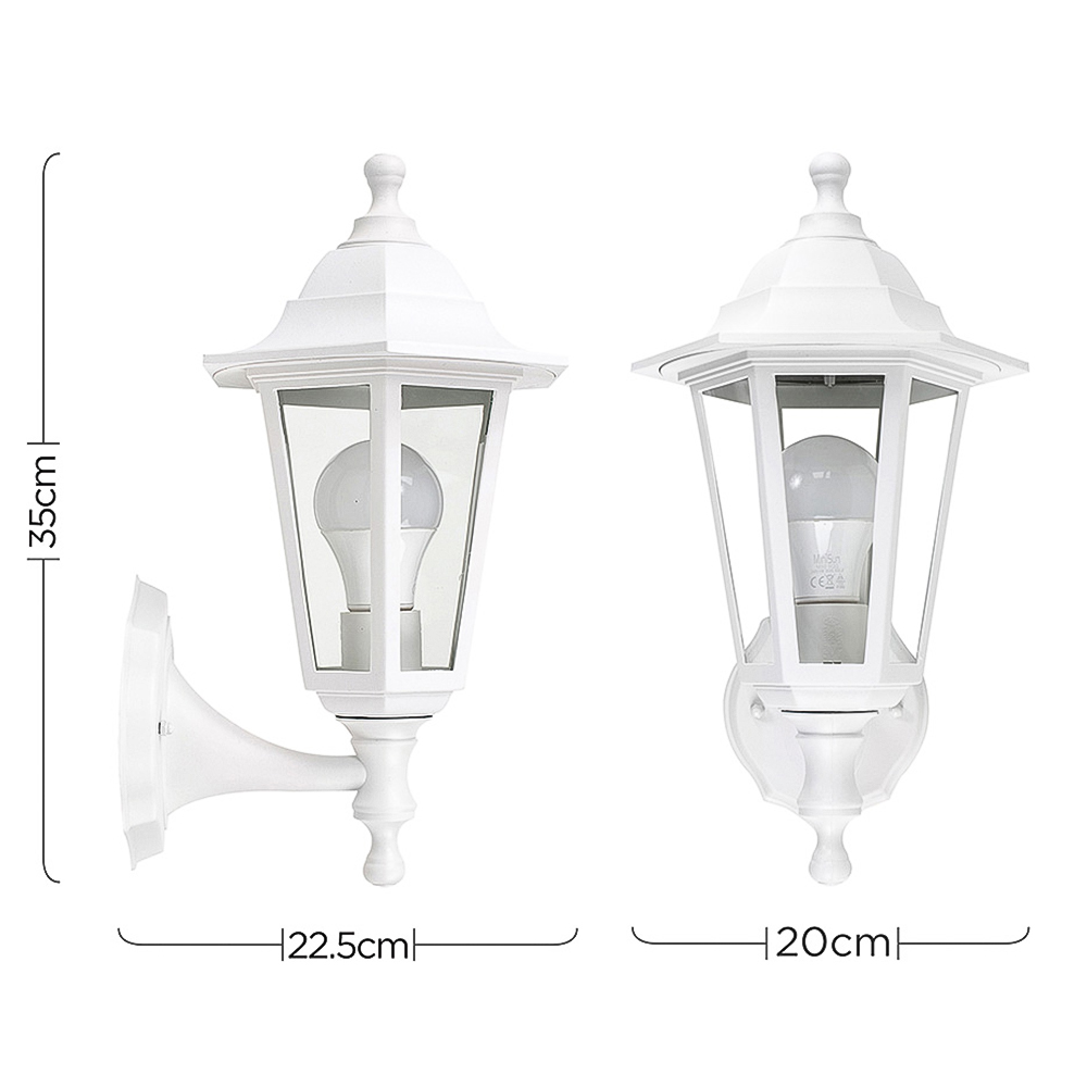 Enhance the beauty of your outdoor space with the ValueLights Outdoor White Up and Down Wall Lantern. This beautiful traditional-style up/down outdoor wall light is made from durable, weather-resistant resin. It is an ideal product to create a warm and inviting glow for doorways, porches, and external walls. Additionally, it is an elegant way to add security to your home, as well as provide outdoor decorative lighting. The lantern comes with two IP44 rated six-watt warm white LED bulbs, so you are ready to install and go.