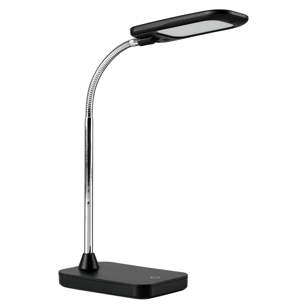 Enhance your workspace with the ValueLights Polaris Gloss Black Desk Table Lamp, featuring a polished chrome adjustable stem. The integrated 5W cool white LED bulb offers excellent illumination for tasks such as reading, studying, and crafting. The fully adjustable chrome stem allows you to direct light precisely where it's needed, and the four-stage touch dimmer makes it easy to adjust the brightness, Perfect for home offices, study areas, or as a bedside reading lamp.