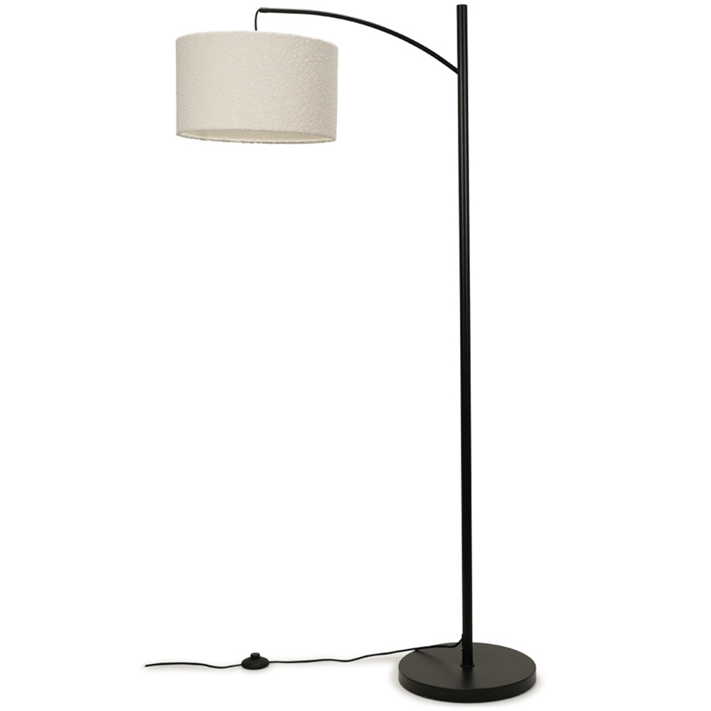 Update your living space with the latest trends in lighting. Mixing quality materials and stylish designs, our range of products are perfect for adding a modern style to your home. This floor lamp comes in black metal finish and features a curved design stem, and includes a cream boucle lamp shade to finish the look. Its simple yet stylish design will add a minimalist touch to your living space. The in-line foot switch provides convenient control, making it easy to illuminate your space.
