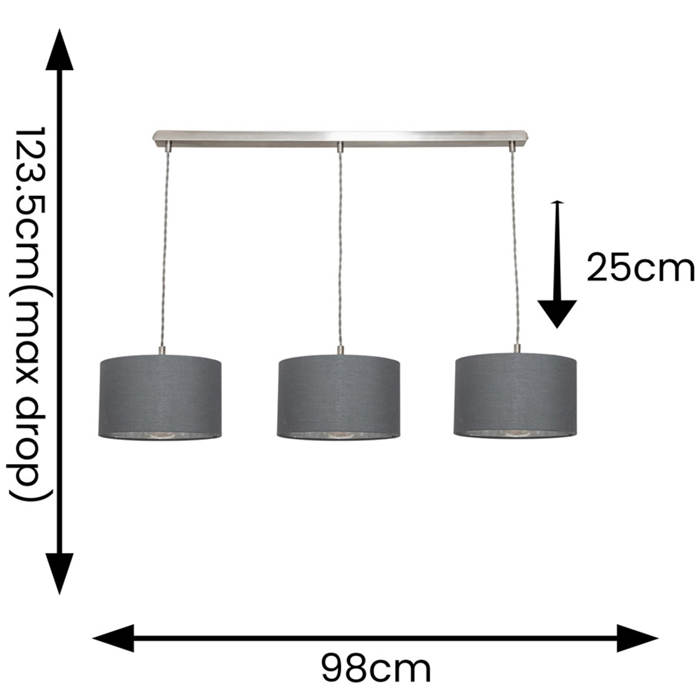 ValueLights Reni Grey and Chrome Drum Shade 3 Drop Bar Chrome Diner LED Ceiling Light