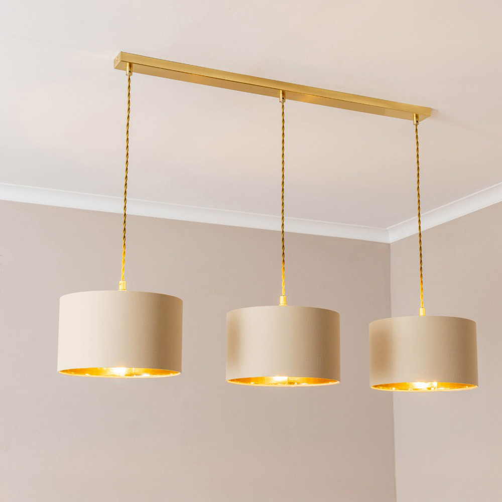 ValueLights Reni Natural and Gold Drum Shade 3 Drop Bar Gold Diner LED Ceiling Light