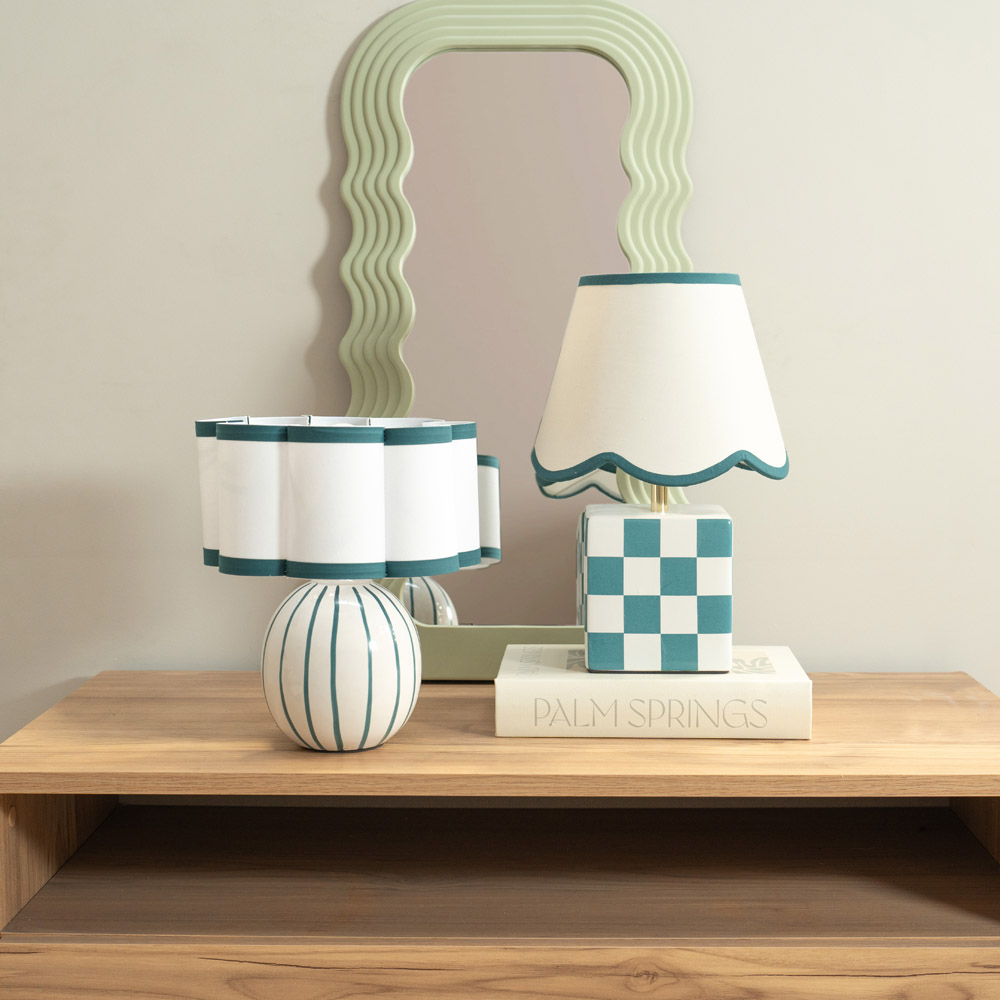 ValueLights Rohan Teal Trim Shade Teal Stripe Ceramic Sphere LED Table Lamp