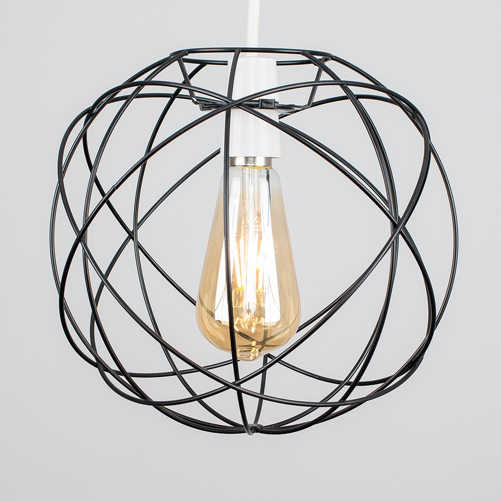 Add a statement piece to your decor with ValueLights Rutherford Atom Matt Black Painted Pendant Shade. This retro-style atom design ceiling pendant light shade in a matt black effect metal finish. Features an open design which shades the bulb whilst allowing light to disperse effectively and evenly throughout the room. It is ideal for lounges, dining rooms, bedrooms and hallways. The right fitting can make a real style statement and complete your living space look. Dimensions: H24.5 x D25cm.