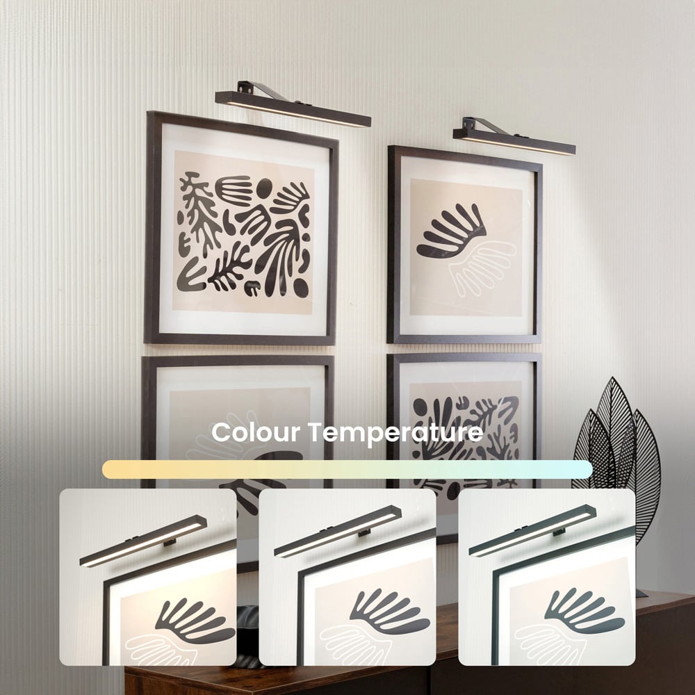 The beauty of this wall light means you can install it on any wall without the requirement of expensive electrician fees and mains installation, making it the perfect rental friendly light. Simply use the touch switch on the side of the light or use the remote provided to turn the light on/off, dim the light and choose from a warm white, cool white or a neutral glow. This sleek and modern design picture light comes in a gold or black finish, and comes as a handy pair. Simply install the back plate to the wall with the screws provided. The rechargeable battery allows the lamp to go cordless and the built magnet allows you to detach the light from the fitting. This easy fit light comes complete with a 50cm USB charging cable. Please Note - The recommended charging time for full charge is 6 hours to get 8 hours glow time. Dimensions - H4 x W40 x D2cm.