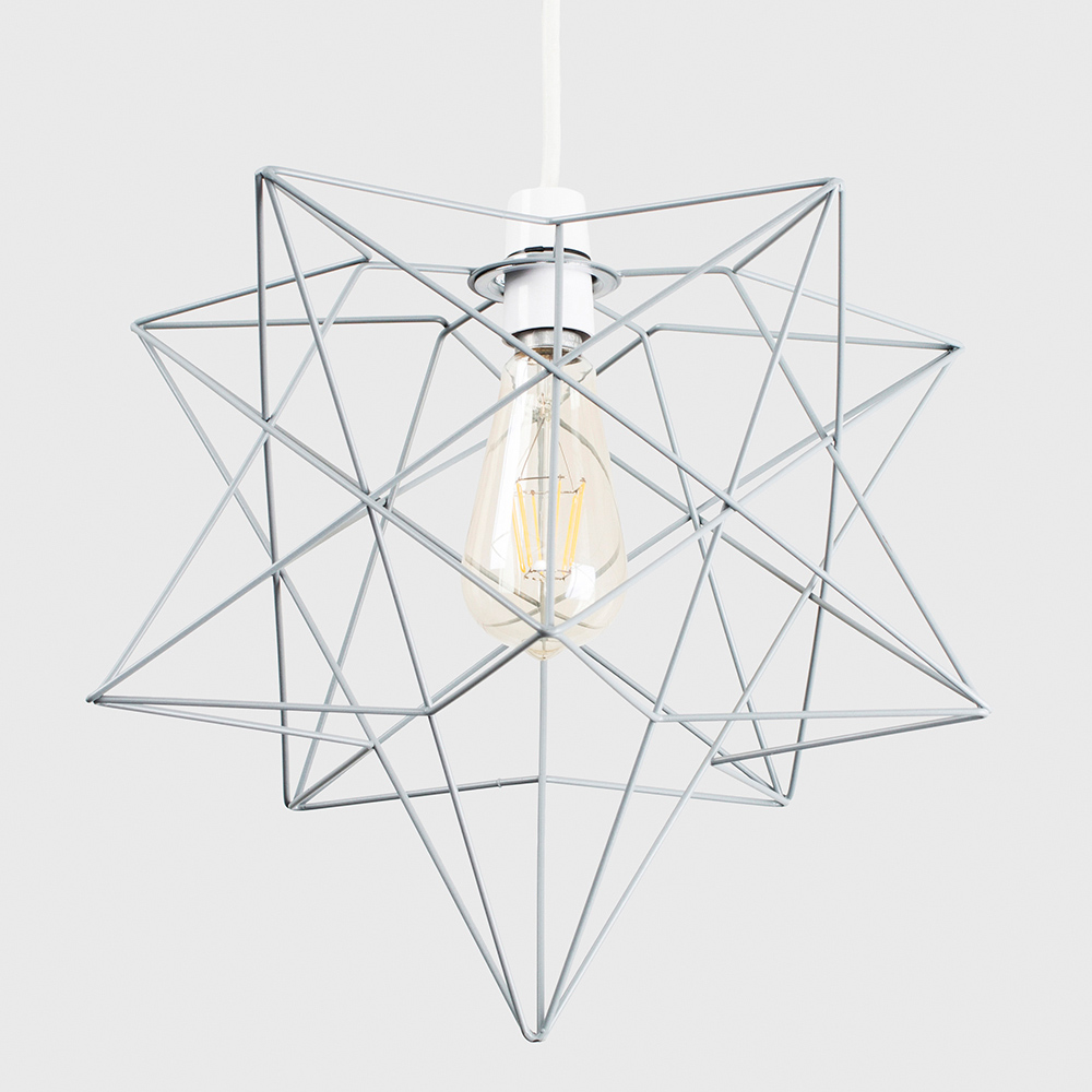 ValueLights Sadira Matt Grey Wire Star Pendant Lamp Shade