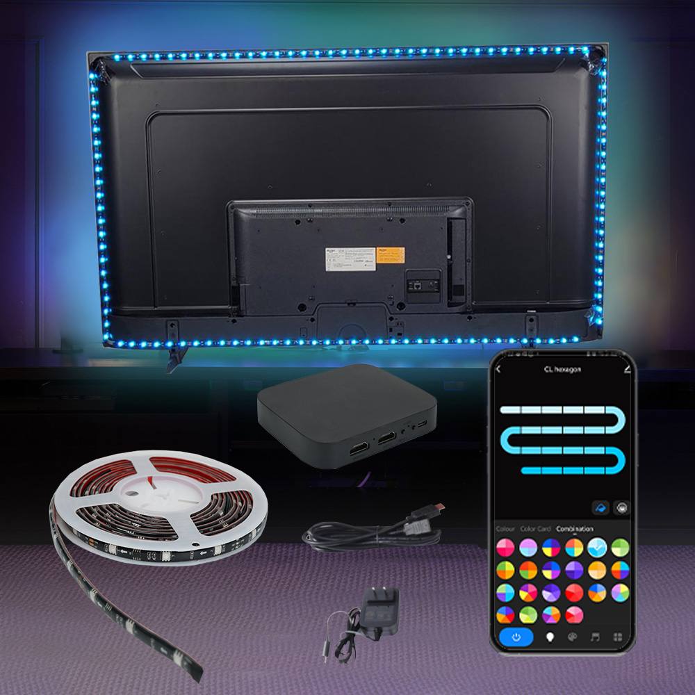 Elevate and light up your space in style with ValueLights Smart App-Control RGBIC TV Backlight LED Kit. Discover an easy start to smart lighting with this LED home cinema kit. Featuring a HDMI running lighting sensor and a TV backlight. Using RGBIC chips, they can display a multi-colour effect of dream colours and a choice of 16 million colours providing unlimited customization options, brightness levels and flowing multicolour effects. Sync up with your music and mimic the colours from your screen to amp up any party or entertainment system. Simply download the Smart Life app and connect the lights to your smartphone. App control allows you to use your mobile phone to turn the lights on/off at any time, and set timers and static colour settings. These lights work with Alexa and Google Home, which helps you take control via voice commands. Suitable for 55-75 inch screens only. Dimensions: Length: 154cm.