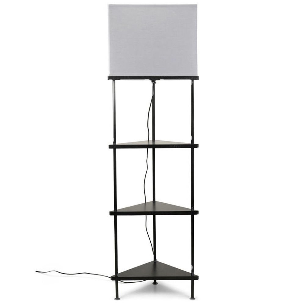 ValueLights Taska Black Wooden 3 Shelf Corner LED Floor Lamp