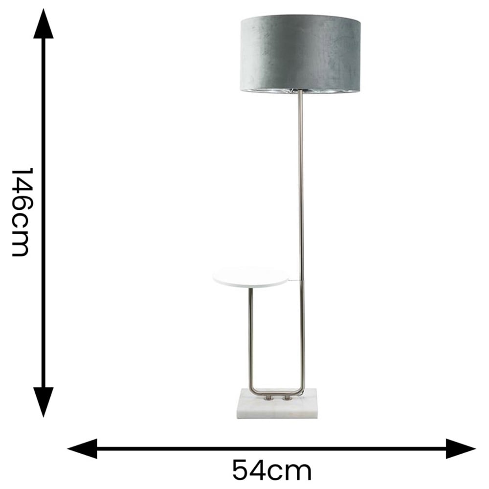 ValueLights Tavel Chrome LED Floor Lamp Table with Grey and Chrome Velvet Lamp Shade