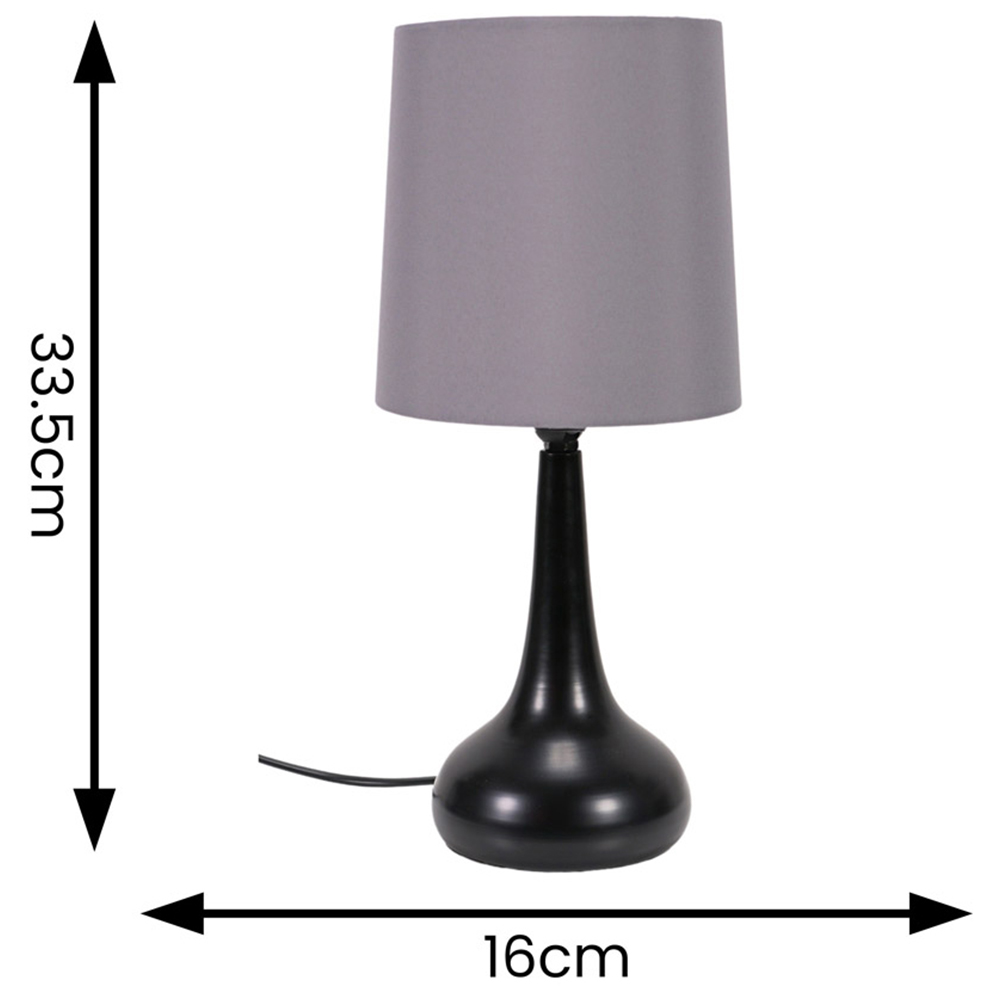 These fantastic touch table lamps, with a black base finish, come in a handy pair and are a wonderful addition to any contemporary home. With a choice of fabric lamp shades to suit your home, including blush pink, black or soft grey. Simply touch the metal base to turn it on, with a choice of lighting settings you can use - a low level light for mood lighting, a medium level light for general lighting and a high level light, which is the brightest setting to create an intense pool of light. Table lamps are brilliant as complementary lighting and are perfect to light up dull corners, and this pair are great for the bedside. Please Note: These lamps require dimmable bulbs and will not function with standard LED or energy-saving bulbs. Dimensions: H34 x W16 x D16cm.