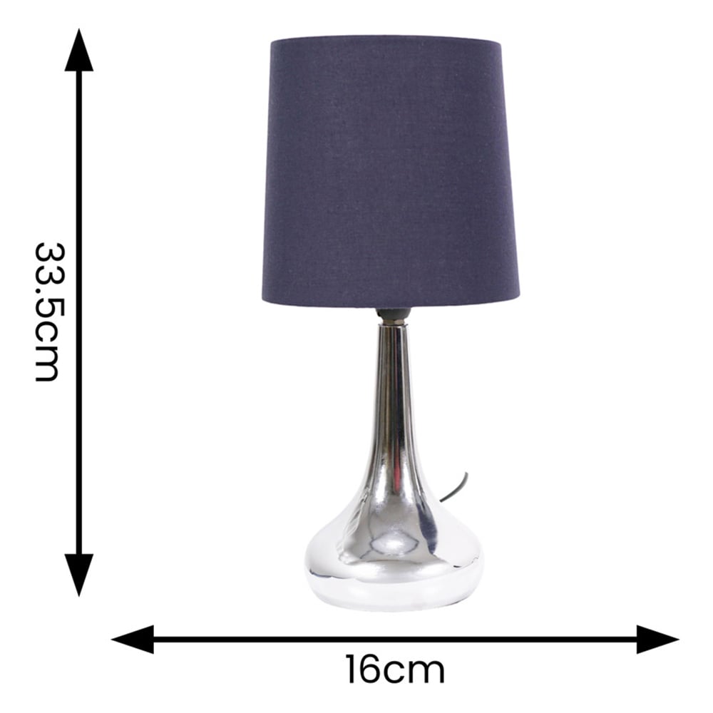 These fantastic touch table lamps, with a polished chrome base finish, come in a handy pair and are a wonderful addition to any contemporary home. With a choice of fabric lamp shades to suit your home, including a soft grey, cream, mustard yellow, darker navy, black, bright red or gentle blush pink. Simply touch the metal base to turn it on, with a choice of lighting settings you can use - a low level light for mood lighting, a medium level light for general lighting and a high level light, which is the brightest setting to create an intense pool of light. Table lamps are brilliant as complementary lighting and are perfect to light up dull corners, and this pair are great for the bedside. Please Note: These lamps require dimmable bulbs and will not function with standard LED or energy-saving bulbs. Dimensions: H34 x W16 x D16cm.