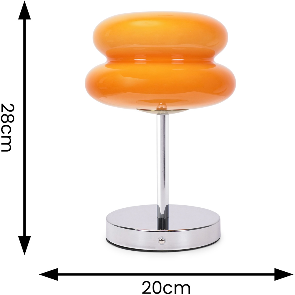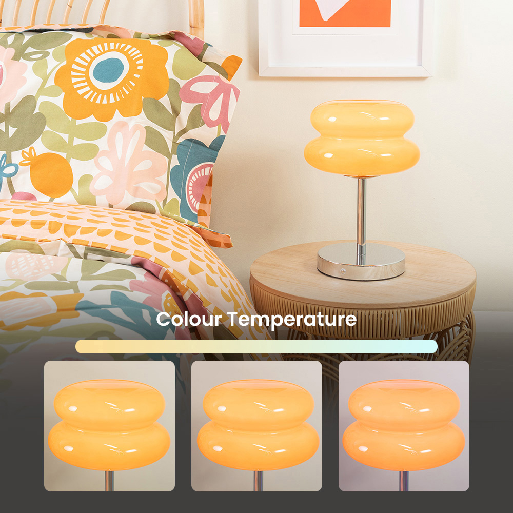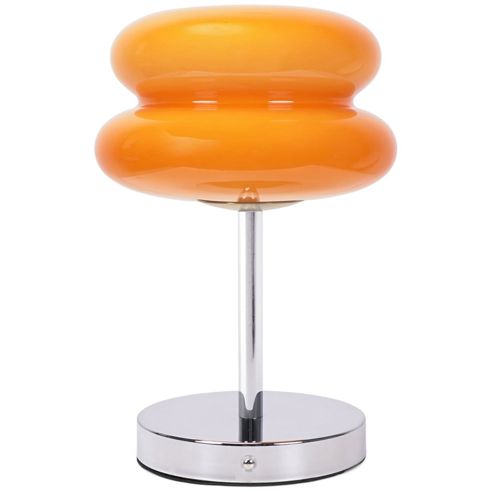 Our cordless table lamp makes a real statement in your personal space. Crafted from chrome metal with an orange glass shade that forms a macaron design. This lamp brings a pop of colour and charm to any room. Featuring a touch button to turn the light on/off, choose from warm, cool or natural light and dim the light brightness. Simply charge the lamp and use it anywhere. This rechargeable lamp comes complete with a 1M USB charging cable. The recommended charging time for full charge is 4 hours to get 6 hours glow time. Whether your style is modern, or more sleek and minimalist, this lamp will fit perfectly into any room in your home.