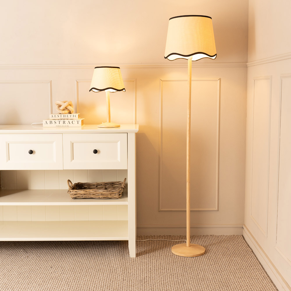 ValueLights Triston Scallop Black Edge Shade Light Wood LED Floor Lamp