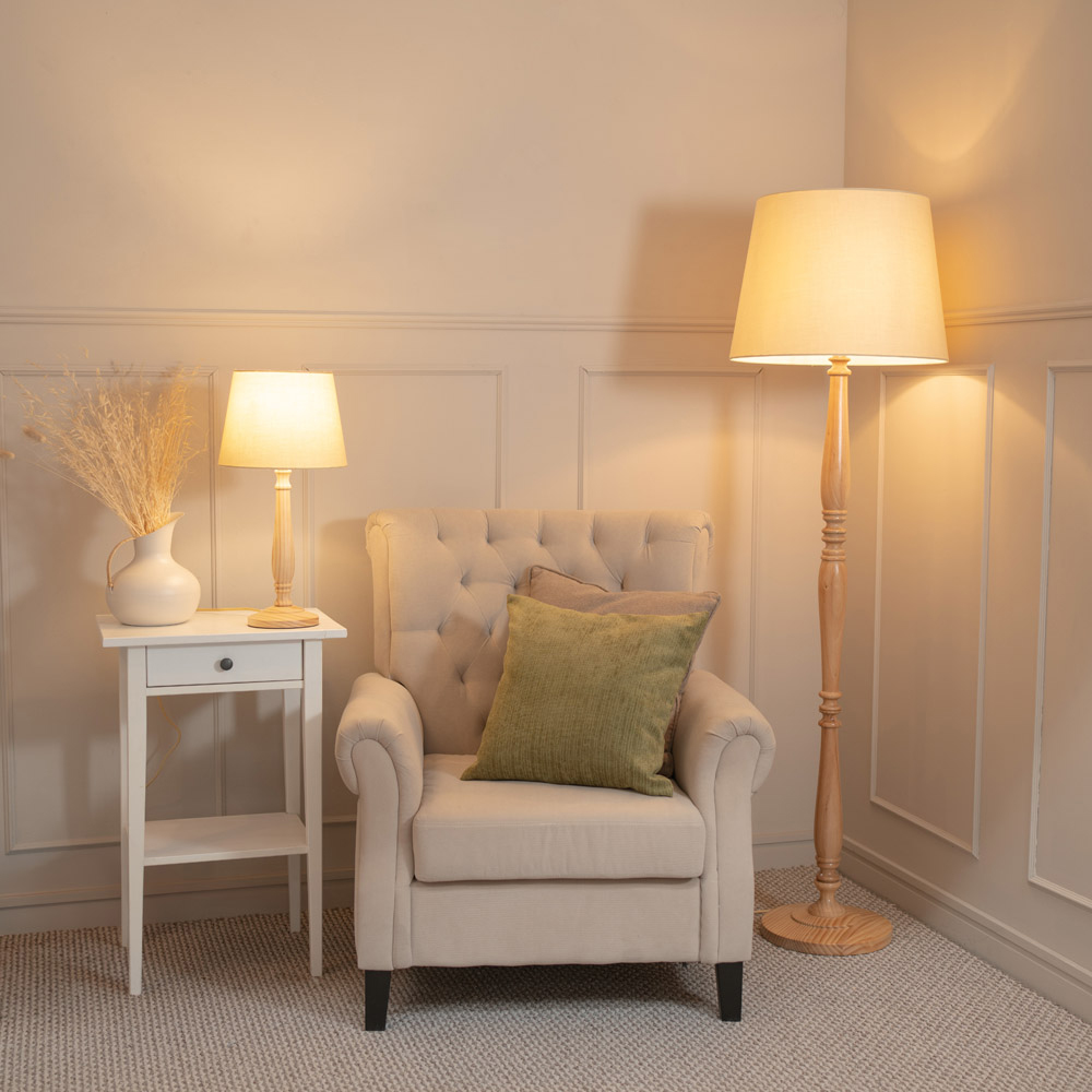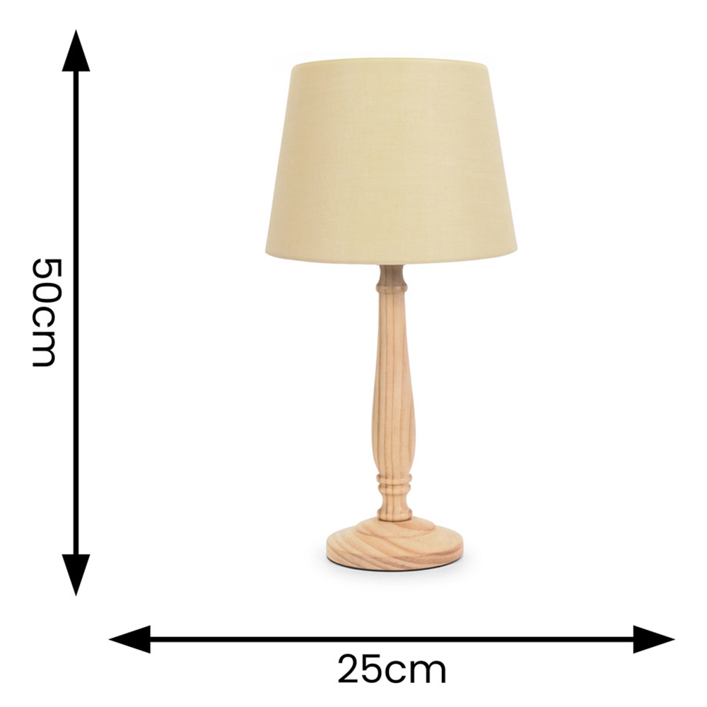 The Victoria candle stick table lamp in light wood is the perfect choice for any home with a traditional interior. Perfect to pair with a beige tapered shade for your perfect piece.