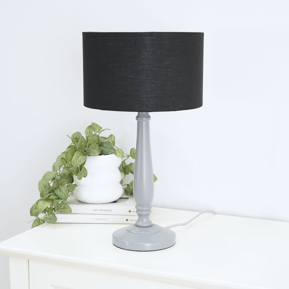 The Victoria candle stick table lamp in grey wood is the perfect choice for any home with a traditional interior. Perfect to pair with a black drum shade for your perfect piece.
