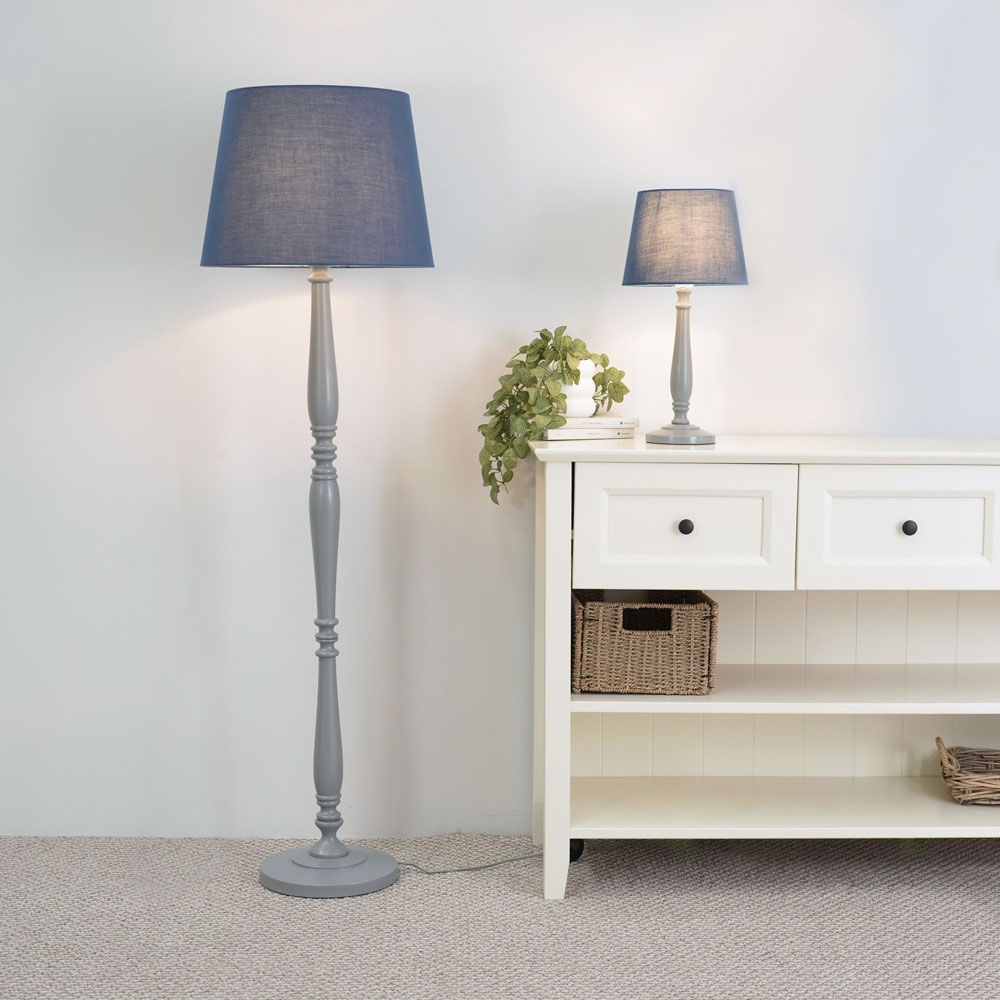 The Victoria candle stick floor lamp in grey wood is the perfect choice for any home with a traditional interior. Paired with a navy tapered fabric shade for the perfect finished piece.