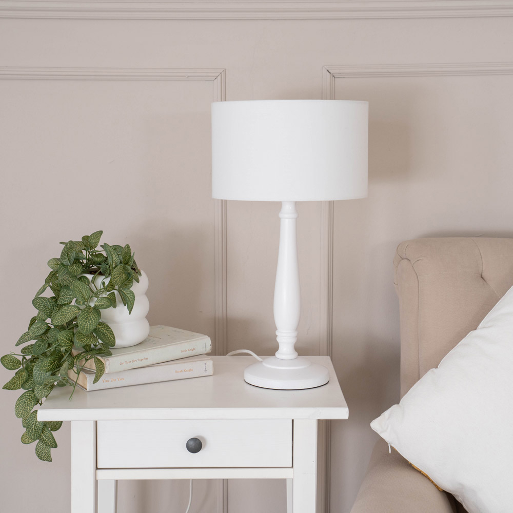 The Victoria candle stick table lamp in white wood is the perfect choice for any home with a traditional interior. Perfect to pair with a white shade for your perfect piece.