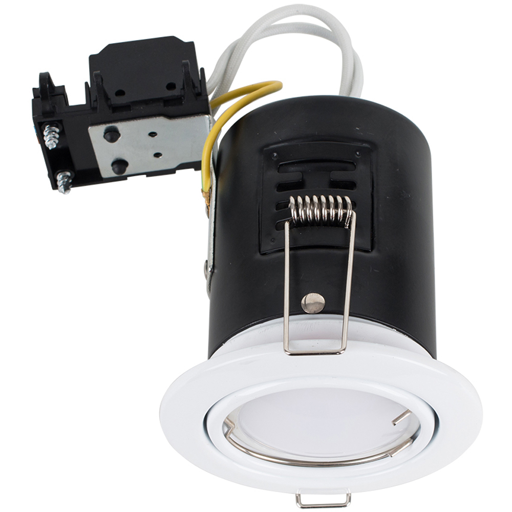 Pack of 10 quality mains GU10 tiltable fire rated recessed downlights that come in a choice of finishes, including Brushed Chrome, Black Chrome, White and a standard Chrome. These come complete with terminal block, GU10 lamp holder and bracket for installation. They feature a metal spring clip for easy installation, and there is no transformer required - simply wire directly to the mains. Supplied with product guidelines and full fitting instructions, and suitable for use with either regular halogen or LED GU10 bulbs. This kit includes Warm White LED GU10 bulbs.