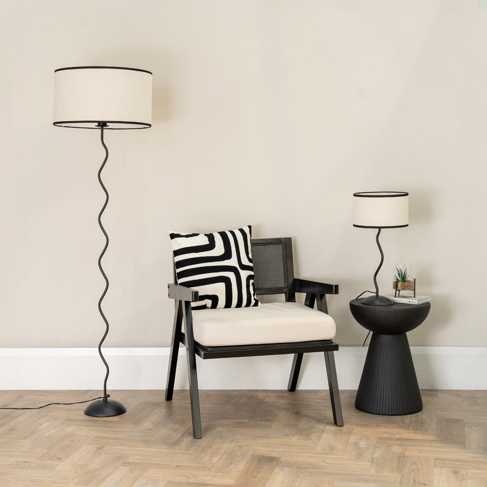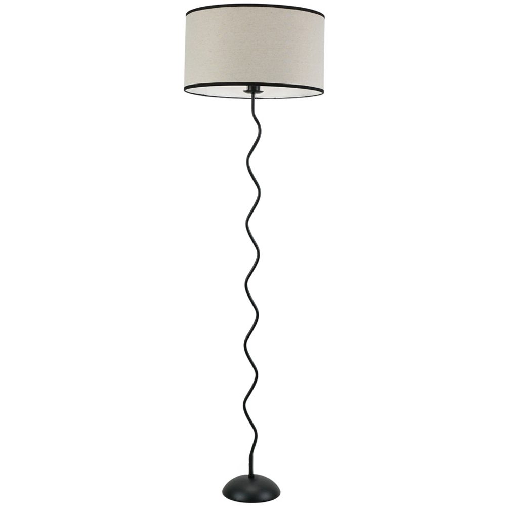Make a quirky addition to your living space with this ValueLights Wiggle Floor Lamp. Its black metal base boosts the style points in any interior, and it’s paired with a natural colour drum linen shade with contrasting black trim. The shape of the wiggle lamp base matches the effortlessly elegant light shade perfectly, giving you a design piece as well as a modern floor lamp. Complete with a suitable LED bulb and a 12-month warranty for peace of mind, the ready-to-use lamp is the perfect statement piece for any contemporary decor theme. Dimensions: H160 x W45 x D45cm.
