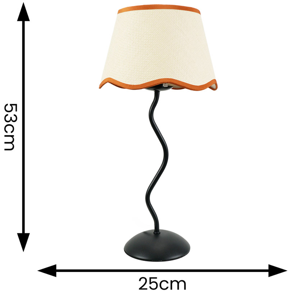 Elevate your home decor with the ValueLights Wiggle Linen Scallop Rust Edge Tapered Shade Black Metal Stem LED Table Lamp. This charming lamp features a black metal base that enhances the style of any interior. Featuring a scalloped shade and the shape of the wiggle lamp base matches the effortlessly elegant light shade perfectly, giving you a design piece as well as a modern table lamp. There’s also a 1.5m cable with a rocker switch for easy use.