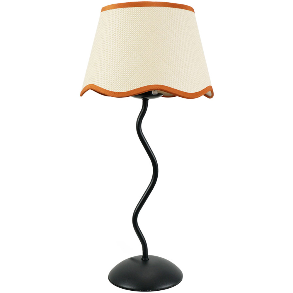ValueLights Wiggle Linen Scallop Rust Edge Shade Black Metal Stem LED Table Lamp