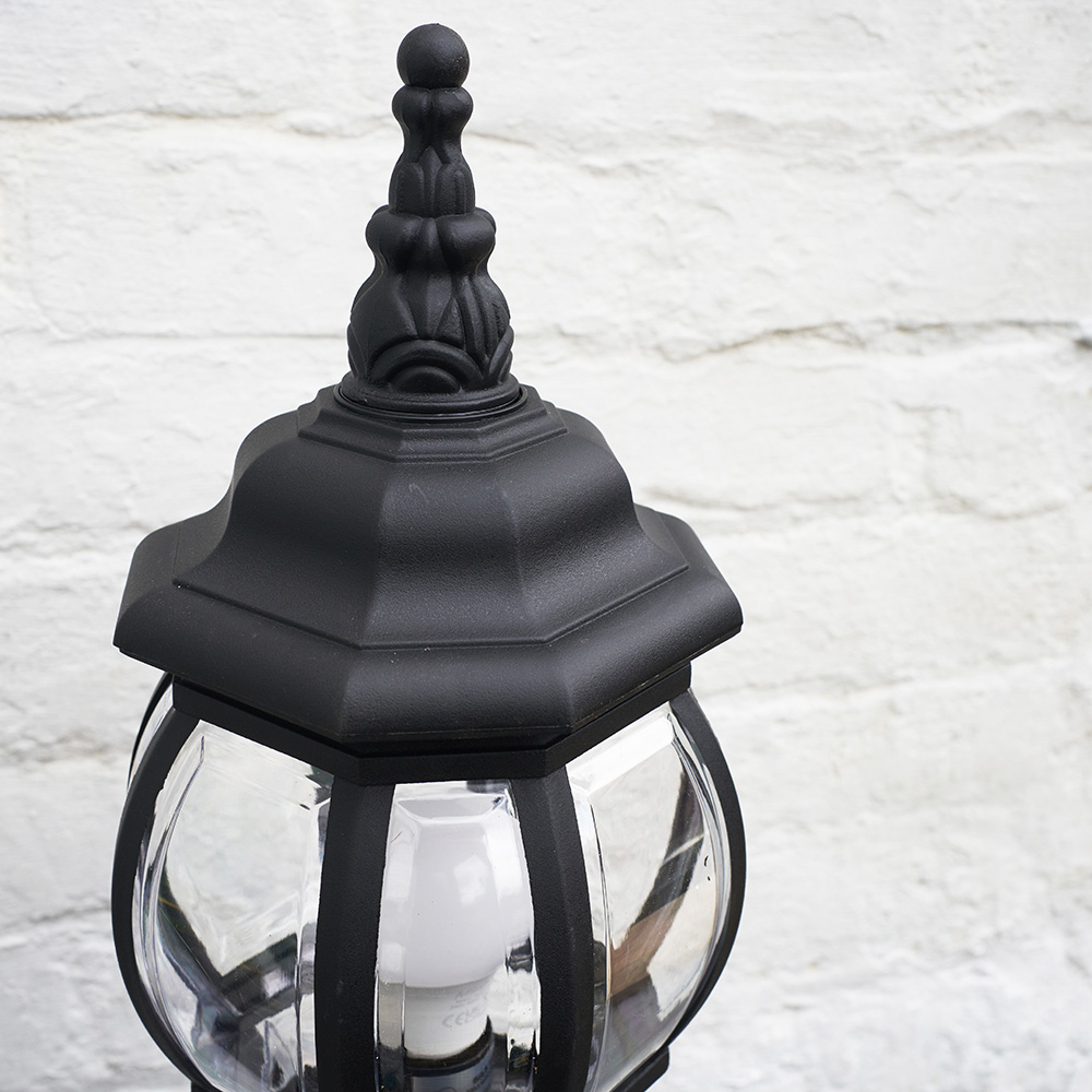 Transform your outdoor space with the ValueLights Windsor Black Outdoor Bollard Light. This traditional outdoor light post in a black finish, is constructed from durable weather-resistant resin. Features clear shade panels with bevelled edge detail. Perfect for lighting gardens, patios, courtyards and driveways. IP44 rated - fully certified for outdoor installation. It comes with a six-watt warm white LED bulb, so you are ready to install and go.