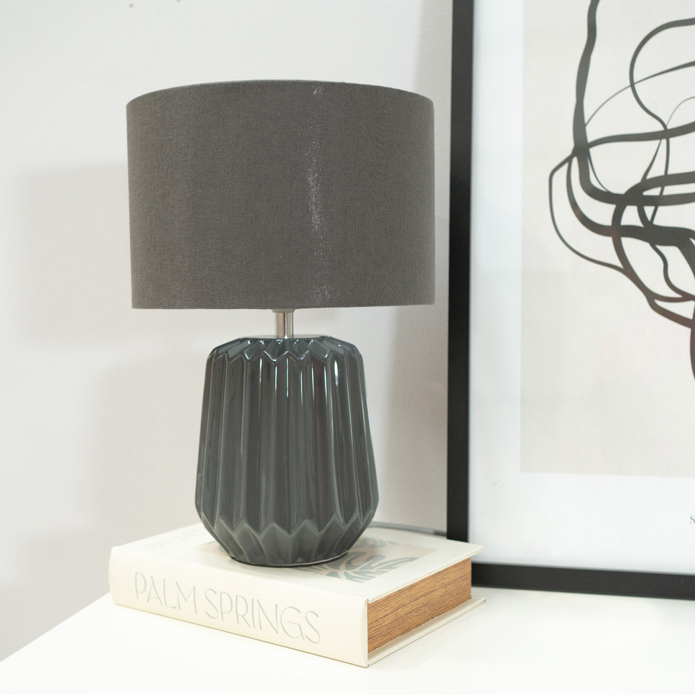 This pair of Zak ceramic table lamps in charcoal are a contemporary design waiting to be the perfect finishing touch for any modern space. With a ribbed effect ceramic base that adds interest through texture and a simple, drum shade this monochromatic table lamp still adds so much style.