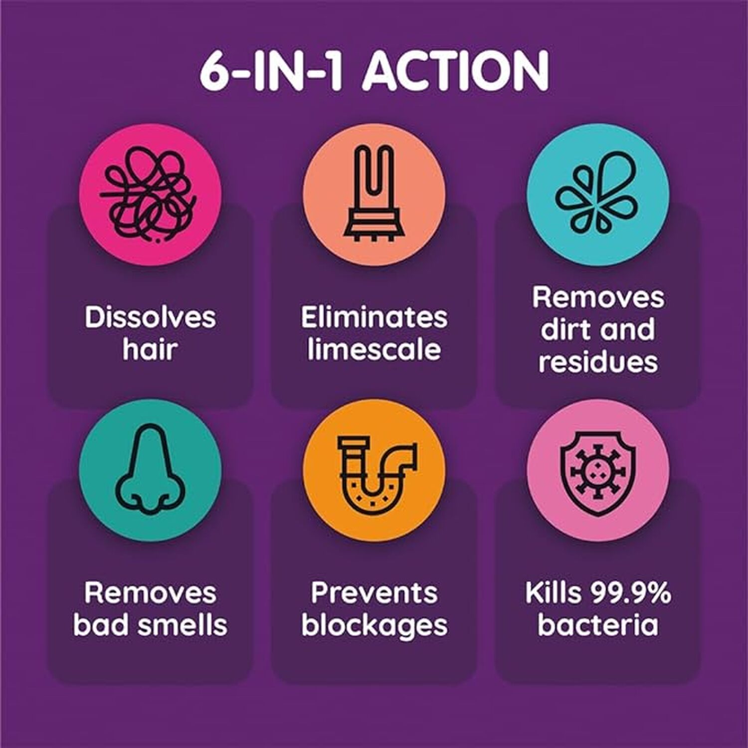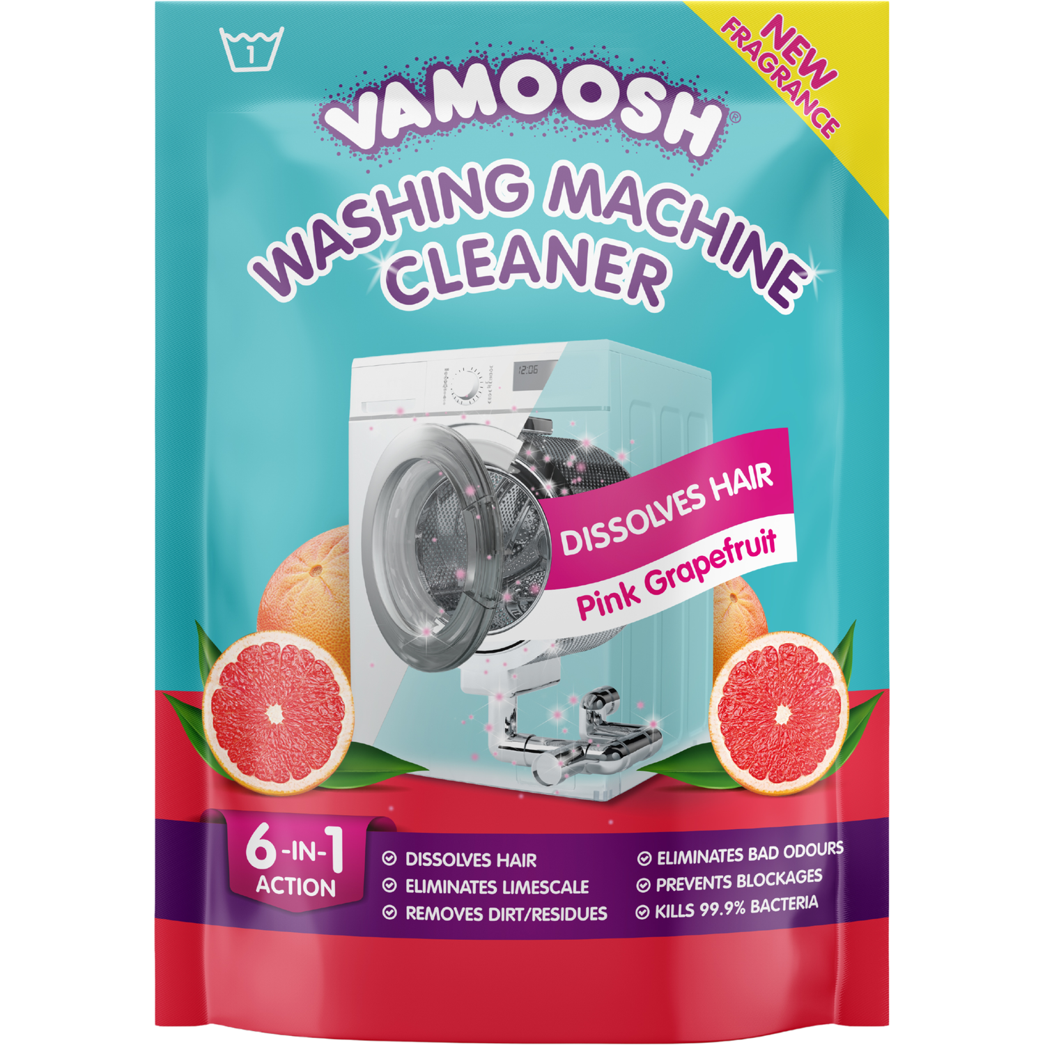 Get yourself a go-to solution for a deep clean with a refreshing twist, with the Vamoosh Washing Machine Cleaner Pink Grapefruit. This powerful cleanser boasts a 6-in-1 formula that tackles dirt and grime with ease. Its hair-dissolving technology ensures clogs are a thing of the past, while its ability to kill bacteria keeps your space hygienic. It also eliminates bad smells and is incredibly easy to use. Simply apply, let it work its magic, and enjoy the vibrant scent of pink grapefruit.