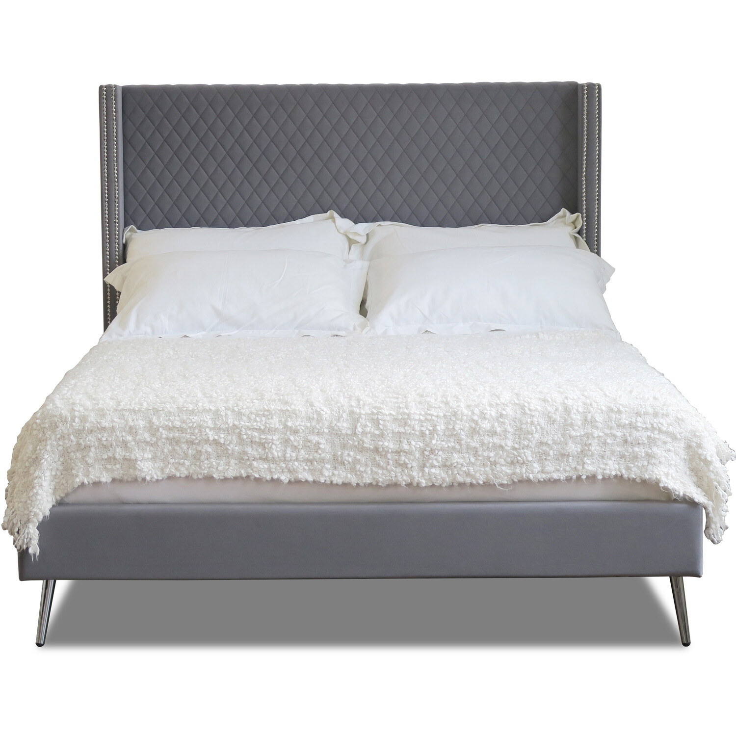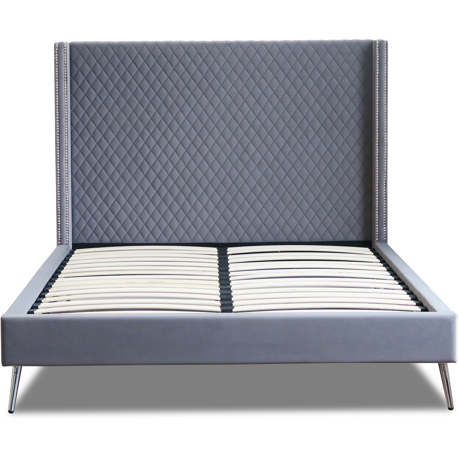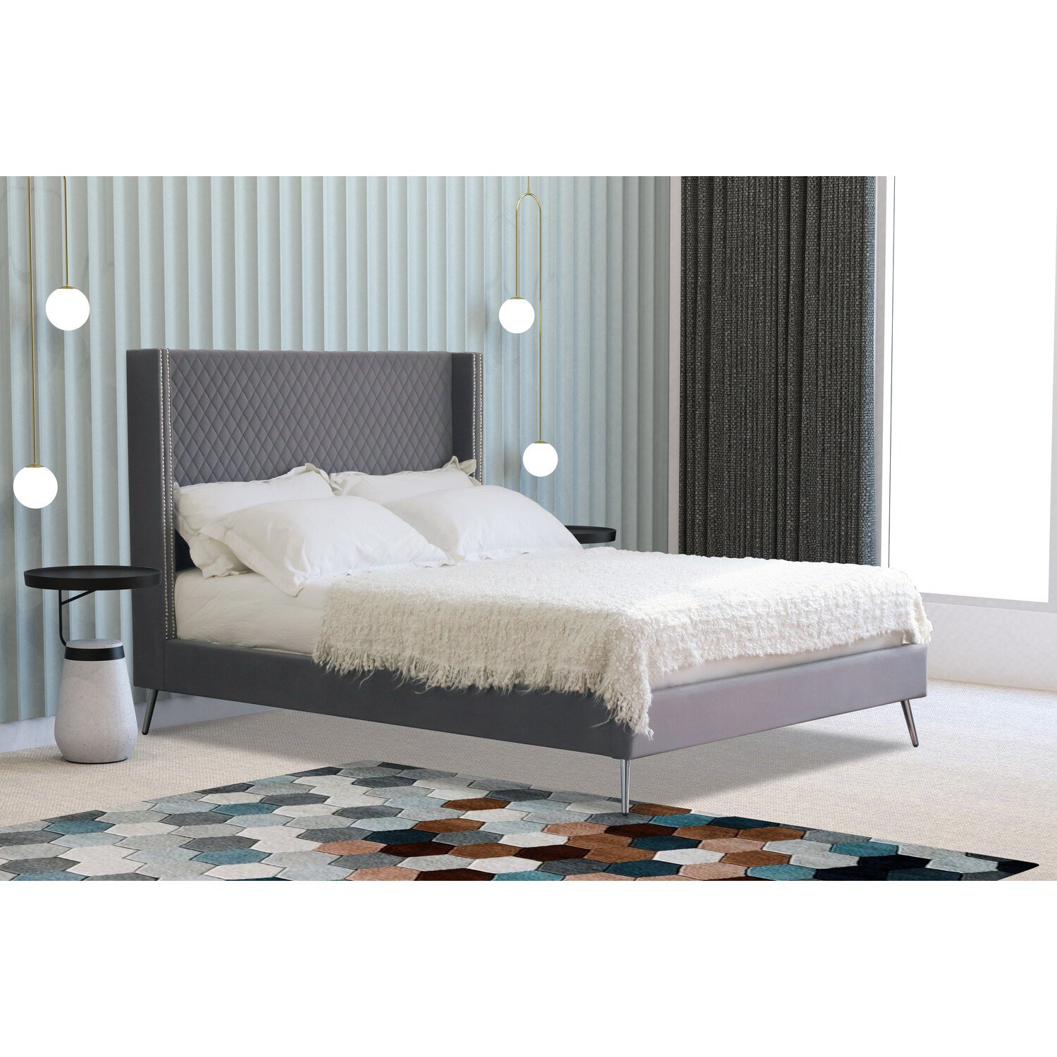 The Vanessa Bed is a sophisticated and luxurious piece of furniture for any bedroom, helping you to sleep in elegant style. This bed has a beautifully modern high headboard with wings accented with metal beads and stitched with a quilted effect to give you a rich, sumptuous feel. The bed has a textured grey fabric to make it feel comfortable and opulent. It features sprung wood slats for ultimate comfort. The bed is finished with coordinating metal legs, meaning this bed will make your bedroom look opulent. With this in your room, you'll be excited to head to bed every evening.