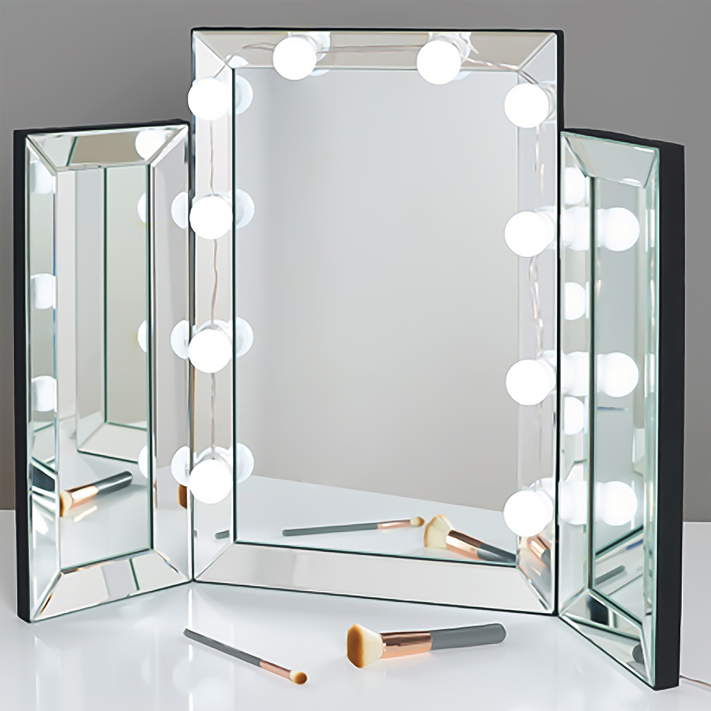This 10L ED Vanity string light is the perfect way to bring a glamorous glow to your home decor. With self-adhesive sticky pads on each bulb, they are easily positionable to create your own vanity style mirror. Offering three colours of light and a dimmable switch, these string lights are sure to offer a stand out feature to any room of your choice!